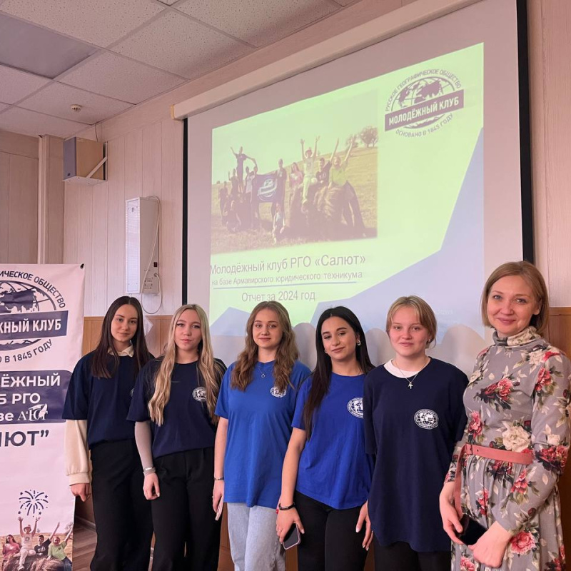 Молодежный клуб Русского географического общества "САЛЮТ" на базе Армавирского юридического техникума был зарегистрирован в марте 2022 года.