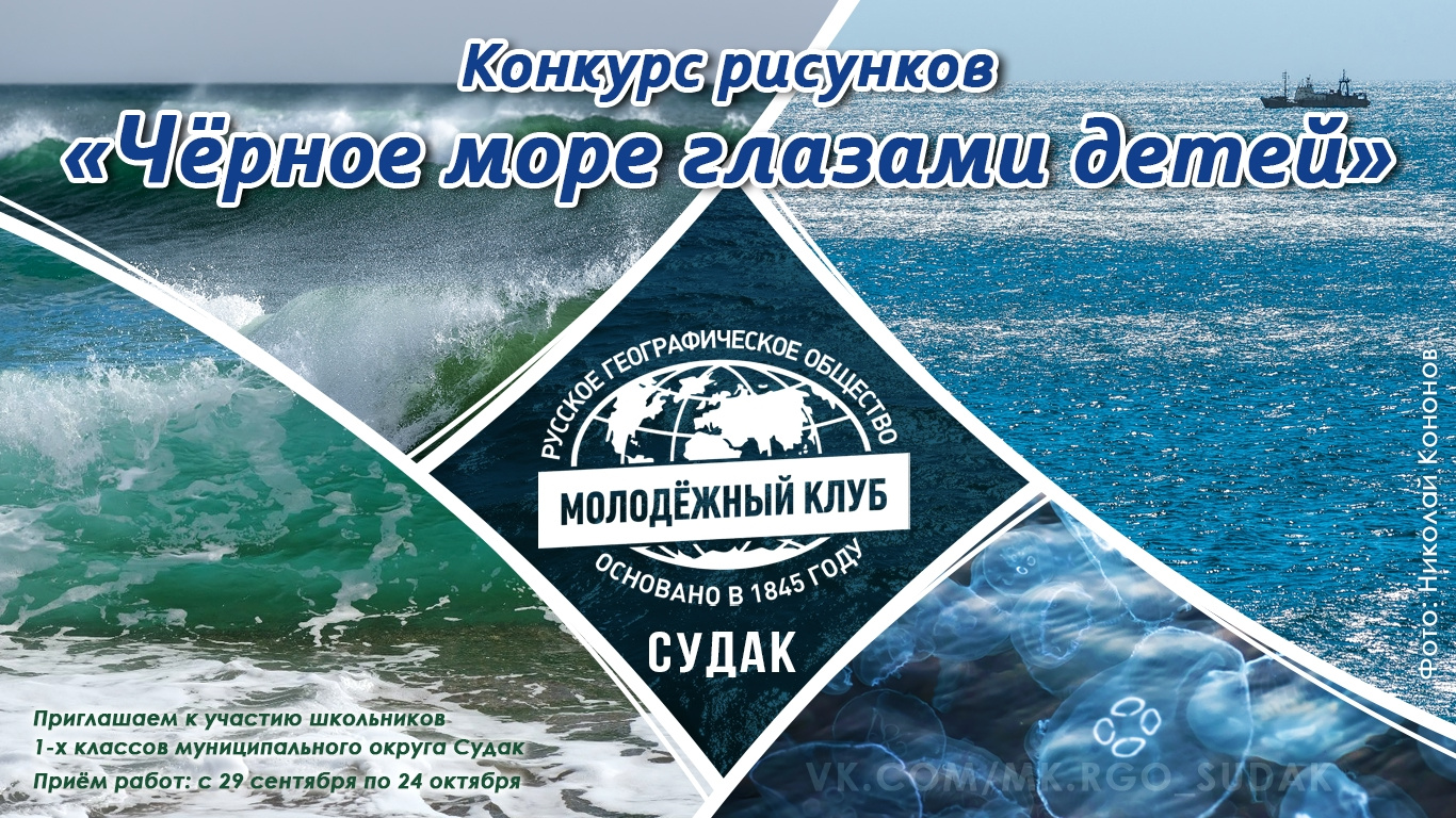 Молодёжный клуб Русского географического общества «Судак» приглашает учащихся 1-х классов принять участие в творческом конкурсе рисунков, посвящённом Дню Чёрного моря.
