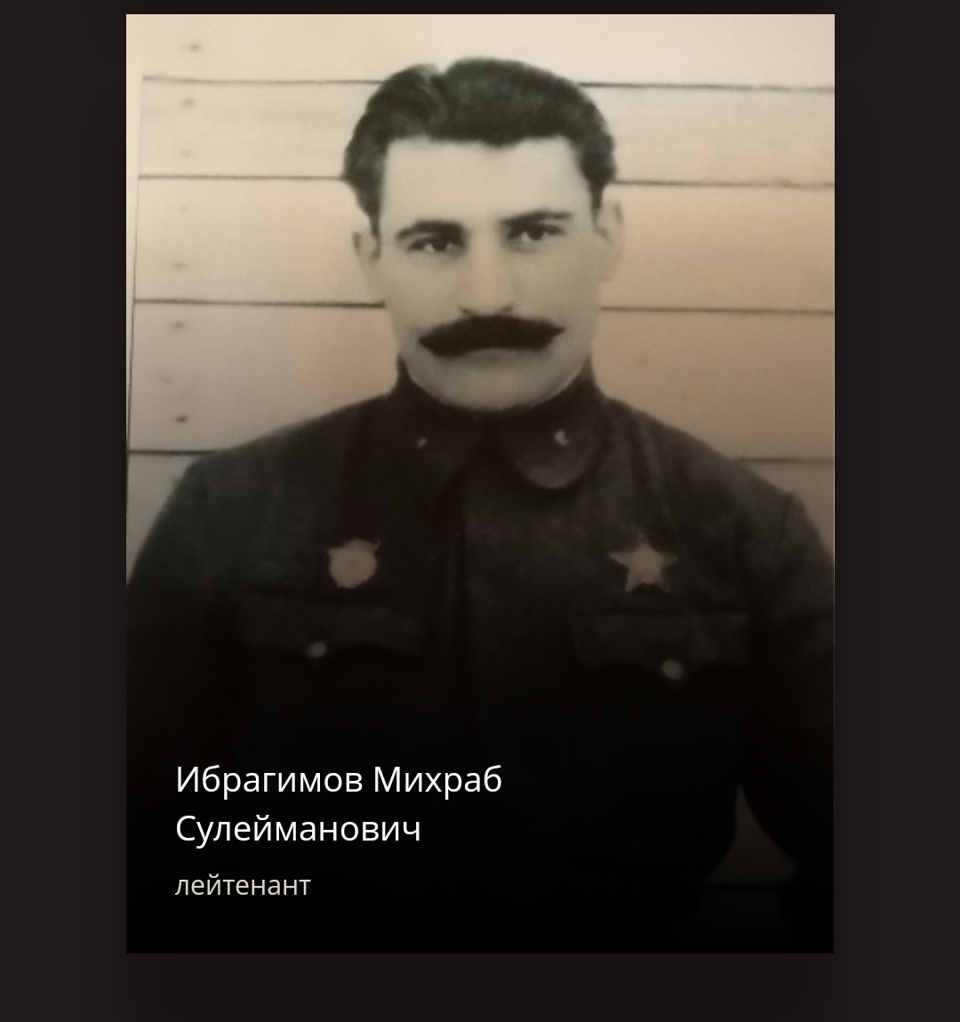 Ибрагимов Михраб Сулейманович, 15.04.1919 года рождения, уроженец с. Куци Лакского района. Он воевал на Ленинградском фронте и 22 июля 1943 года во время ожесточенных боев за Синявские высоты взрывом снаряда был убит, состоял в списках без вести пропавших.