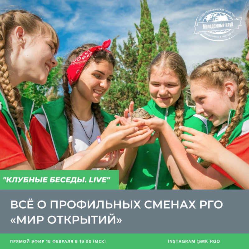 Приглашаем 18 февраля в 16:00 (мск) присоединиться к прямому эфиру в рамках проекта «Клубные беседы. Live». Вы узнаете о том, как грамотно заполнить анкету-заявку и стать частью профильной смены РГО...