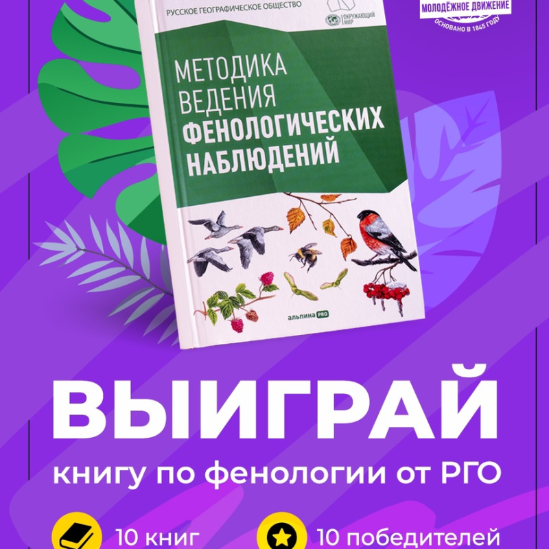 Молодёжное движение РГО дарит 10 книг по фенологии подписчикам сообщества Молодёжного движения РГО во ВКонтакте.