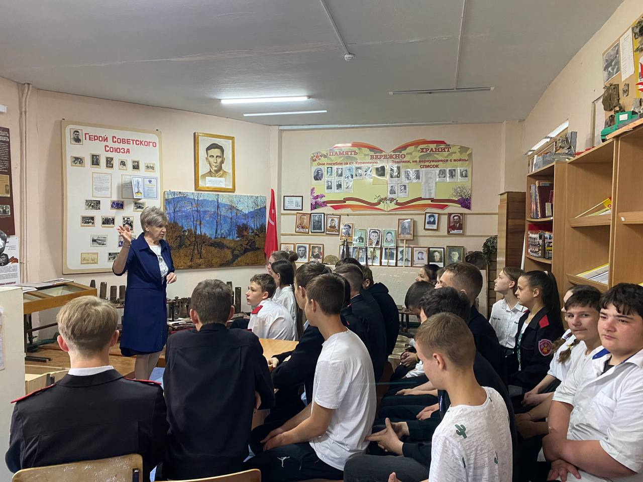 Активисты Молодежного клуба РГО “ЭКОСфера” приняли участие в организации и проведении акции «Ночь музеев-2024» в историко-краеведческом музее школы №25 станицы Куринской Апшеронского района. Экскурсию для ребят провела заместитель директора школы, член РГО Наталья Коломыйцева.