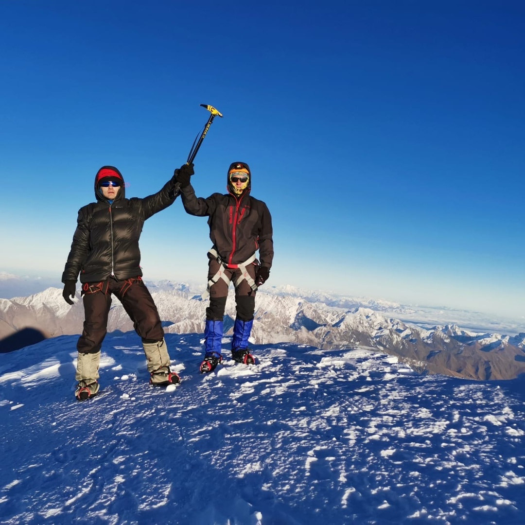 "Это одно из моих самых трудных восхождений, на котором пришлось выложиться максимально. 23 часа непрерывной̆ работы, в итоге мы первые за неделю альпинисты, стоявшие на вершине" - делится впечатлениями Александр.