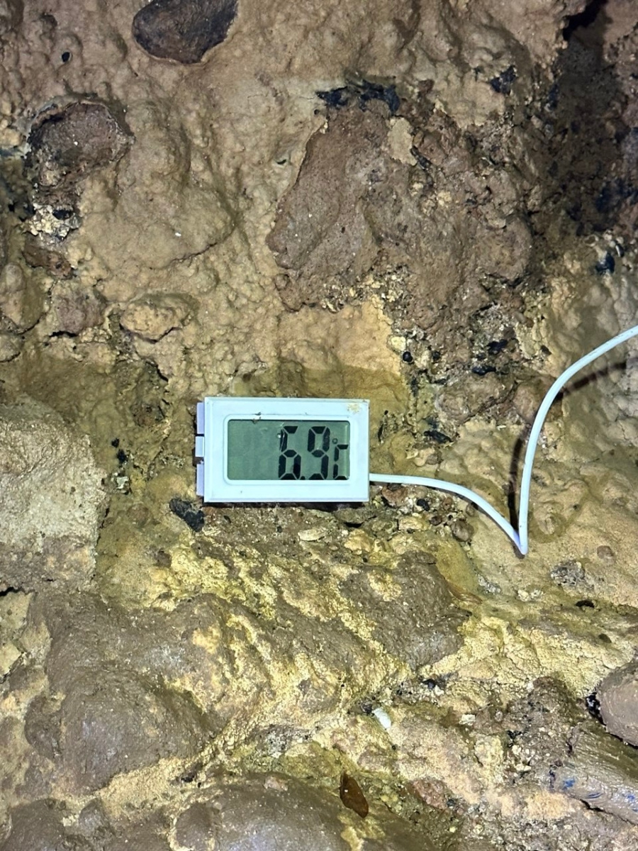 Во время похода участники выполнили замеры температуры воздуха в нескольких залах на верхнем ярусе пещеры. В дальнейшем планируется провести аналогичные измерения на нижних уровнях, а также определить температуру воды. Эти данные являются важными показателями для изучения микроклимата пещеры: они позволяют оценить циркуляцию воздуха и влияние температурных перепадов на воздушные потоки.