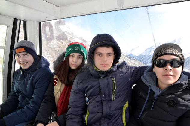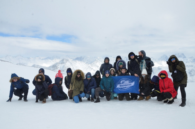 После завершения концерта всем желающим предложили подняться на фуникулере к склону Эльбруса. По мере подъема температура воздуха резко падала, а на самой высотной отметке – станции Гара-Баши, на высоте 3750 метров, активисты молодёжки попали в настоящую зимнюю метель.