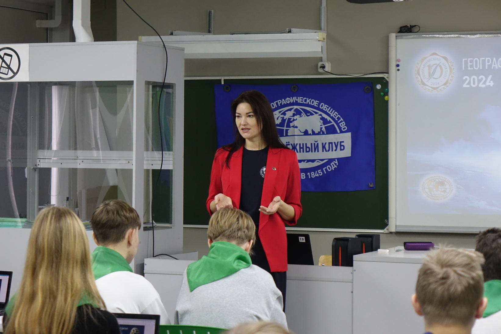 Присоединиться к акции Географический диктант в этом году решила школа №19 г. Черногорска. Поприветствовать участников диктанта, среди которых активисты Молодежного клуба РГО "Хан Тигир", приехала Ульяна Потылицына – руководитель Молодежного центра РГО Республики Хакасия, пресс-секретарь заповедника "Хакасский".