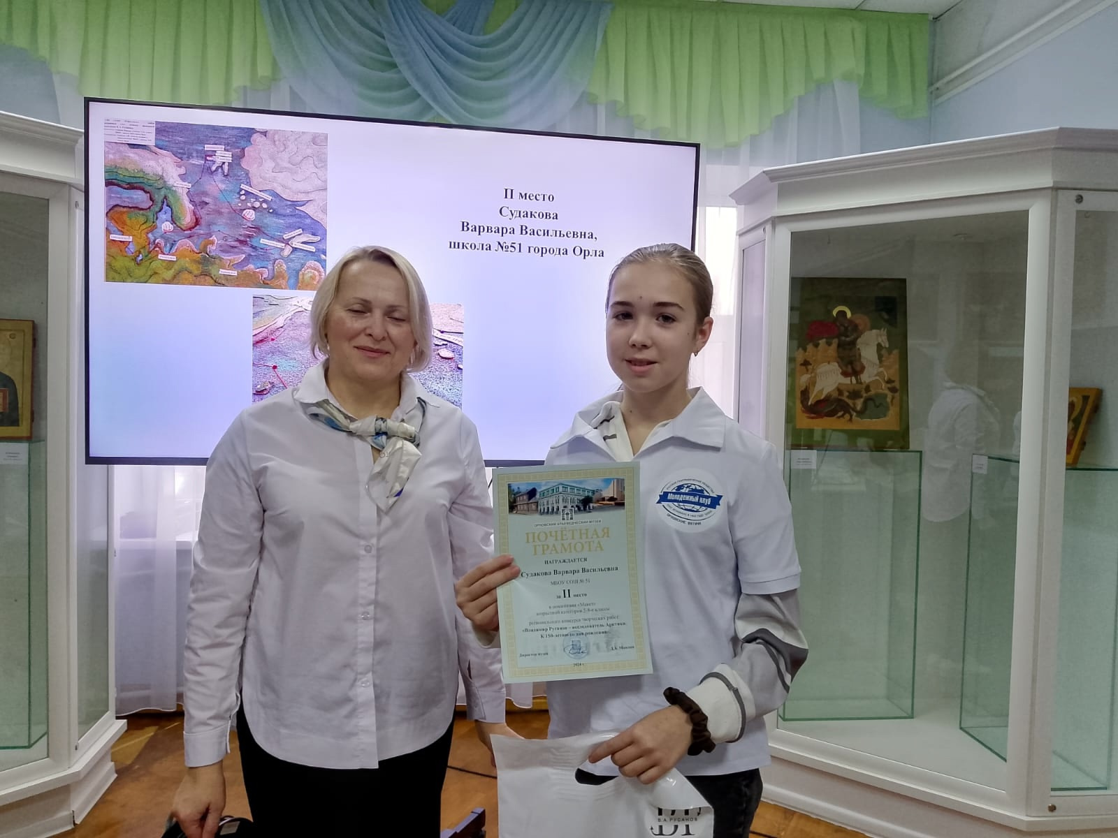 Активисты Молодежного клуба РГО "Орловские вятичи", Станислав Ефремов, Варвара Судакова, Вера Кузькинаи Дмитрий Лагутин заняли призовые места, а Валерии Дорофеевой и Всеволоду Семенову были вручены сертификаты участников регионального конкурса.