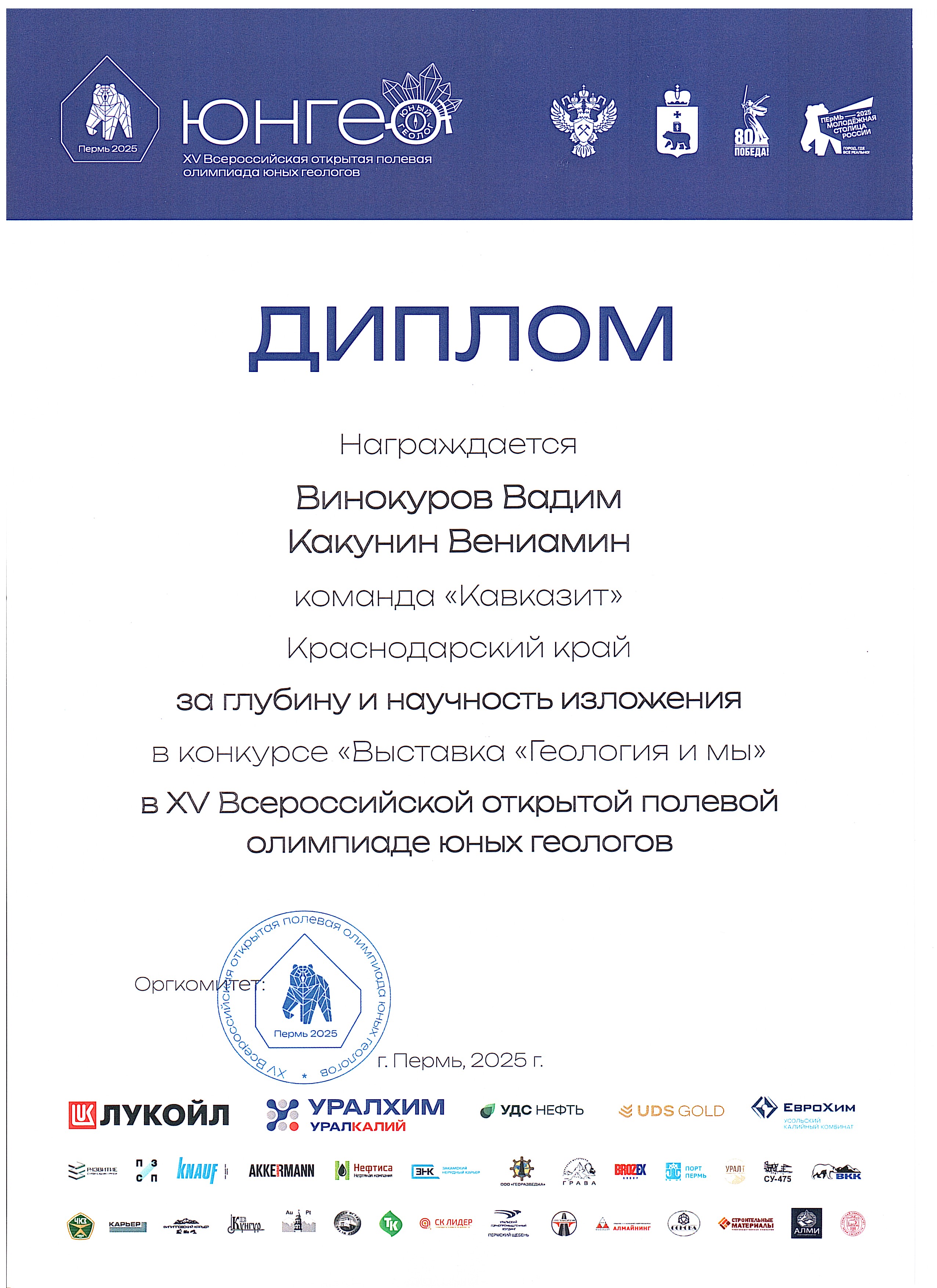Всероссийская олимпиада юных геологов - это не только проверка знаний, а настоящее геологическое приключение. Каждый этап, как отдельная экспедиция: нужно проявить ум, смекалку, командный дух. У ребят также была возможность показать, что геология может стать источником вдохновения. Рисунки, фото, поделки и стенды отразят, чем жила команда между олимпиадами. На этом конкурсе каждый участник команды мог показать свой креатив, фантазию и любовь к природе.
