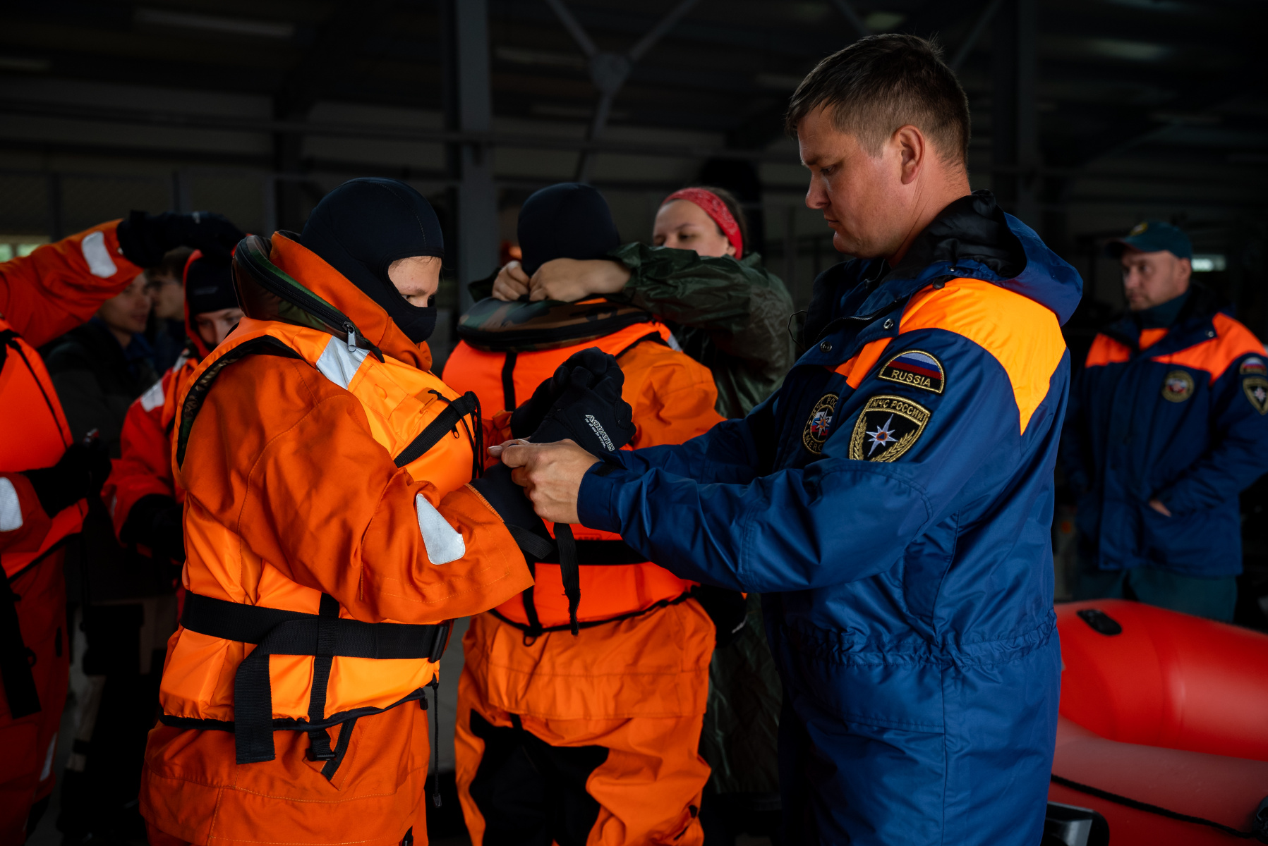 "Незабываемым опытом стало упражнение по спасению человека со льдины с помощью всего одной стремянки! Задача усложнялась в сто раз необходимостью работать в гидрокостюмах. То же самое с попытками забраться на рафт из воды", - поделилась Анастасия Куракова, участница лагеря из Москвы.