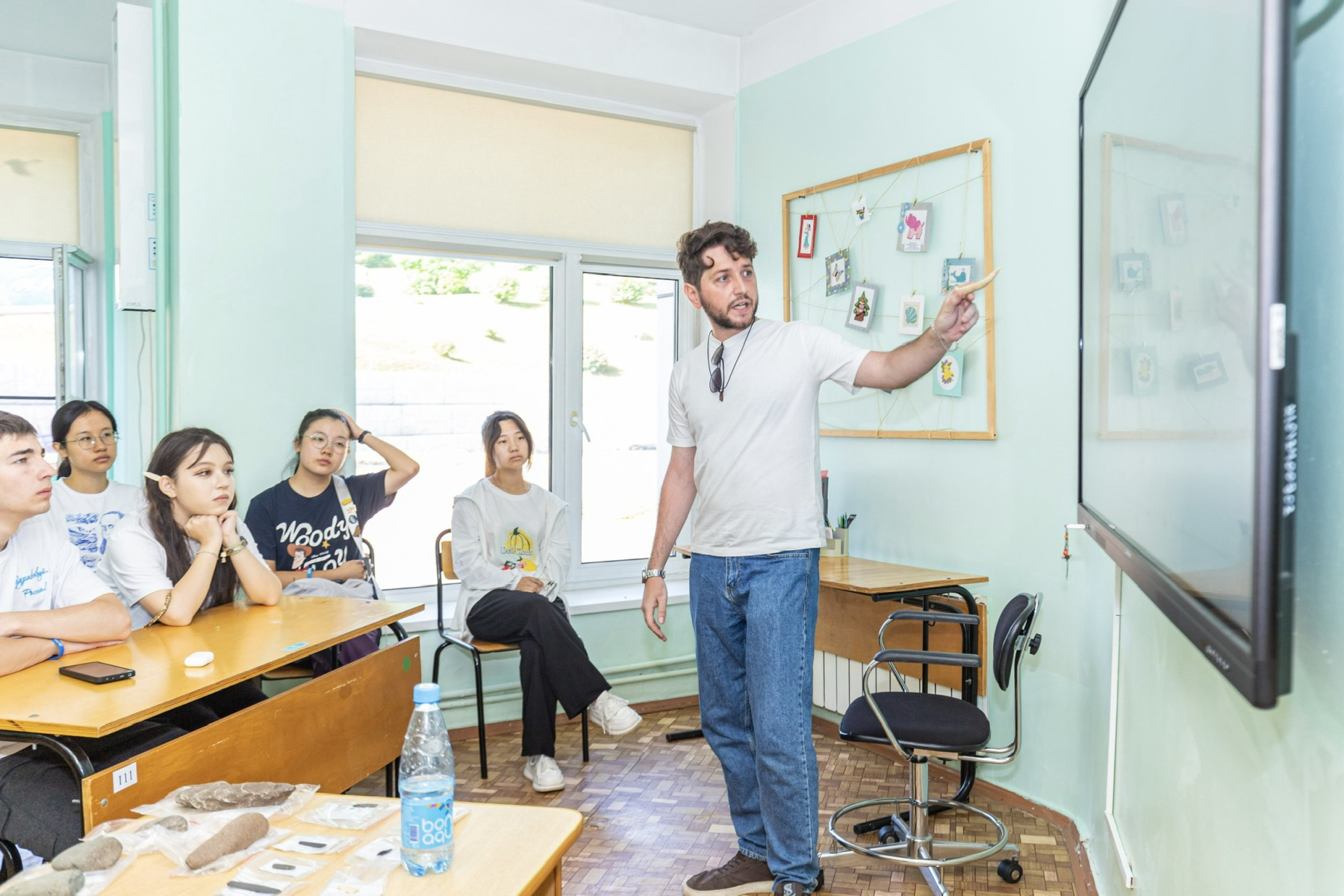 Заместитель директора музея Дальневосточного федерального университета (ДВФУ) Евгений Никитин рассказал участникам профильной смены РГО о раскопках Стеклянухинского городища. Работы идут параллельно с образовательными программами и выставками, каждый посетитель может увидеть настоящие артефакты, поучаствовать в мастер-классах по керамике.