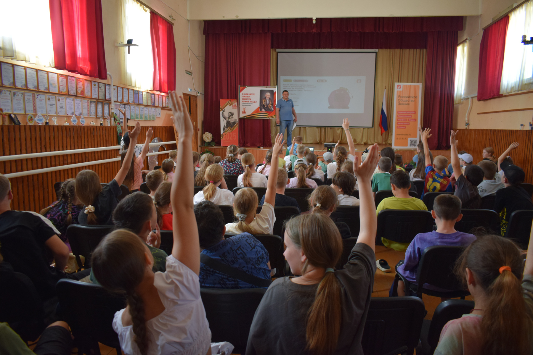 Во второй половине, в рамках сотрудничества с региональным отделение общества «Знание» для участников прошла интеллектуальная викторина "Под солнцем знаний", в рамках которой они в увлекательном формате погрузились в атмосферу летнего отдыха, а также расширили знания о различных играх, туризме, природе России и активных видах досуга.