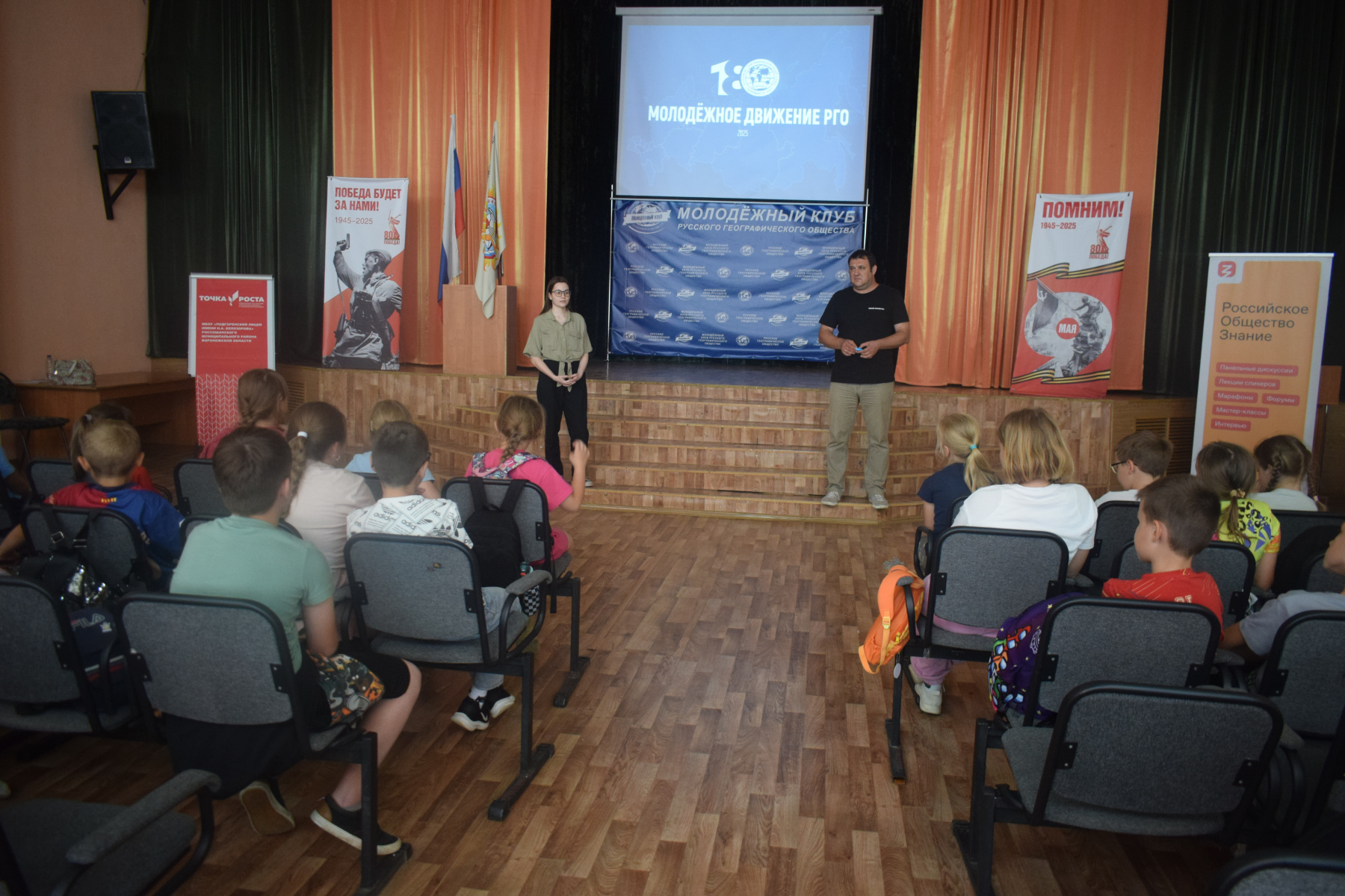 Далее, в рамках первого образовательного трека, прошло заседание Кинолектория, в ходе которого ребята познакомились с уникальным всероссийский проектом – Молодежным клубом Русского географического общества, историей его возникновения и деятельностью в настоящее время.