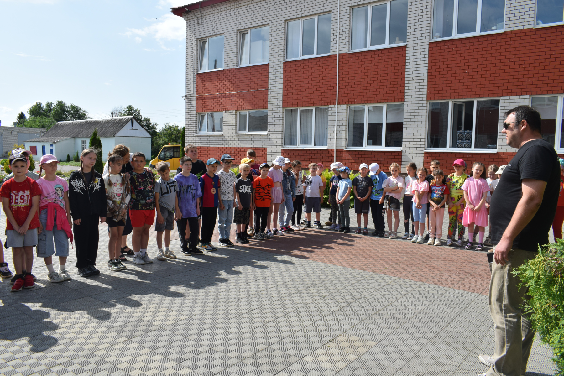 В начале дня, особенностью образовательной программы которого стали мероприятия, посвященные девятилетию со дня создания молодежного движения РГО, ребята провели зажигательную зарядку, а после завтрака состоялась традиционная ежедневная Линейка, в рамках которой начальником лагеря М.В. Овчаренко был озвучен план работы, все вместе исполнили Гимн России, а права поднять Государственный флаг были удостоены активисты - Гетманский Кирилл и Светлана Мазница, после чего все были приглашены к активному участию в тематических образовательных событиях.