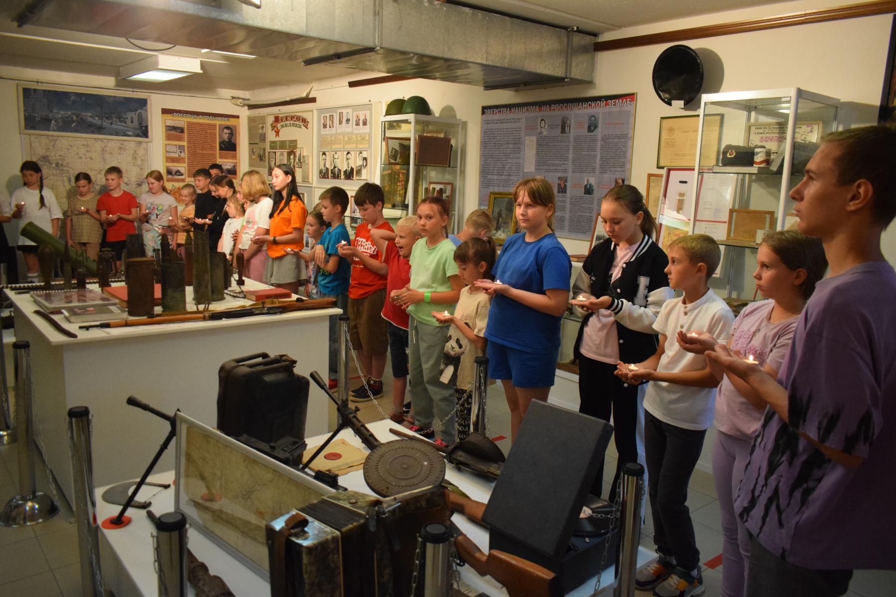 После митинга ребята отправились в Краеведческий музей города Россоши и в рамках образовательно-просветительской экскурсии посетили пять залов постоянной экспозиции, ознакомившись с историей родного края, уделив при этом особое внимание трагическим события оккупации и героического освобождения города и района в годы войны, в завершение поучаствовав в памятной акции "Свеча памяти", отдав дань уважения народу-победителю Великой Отечественной войны.