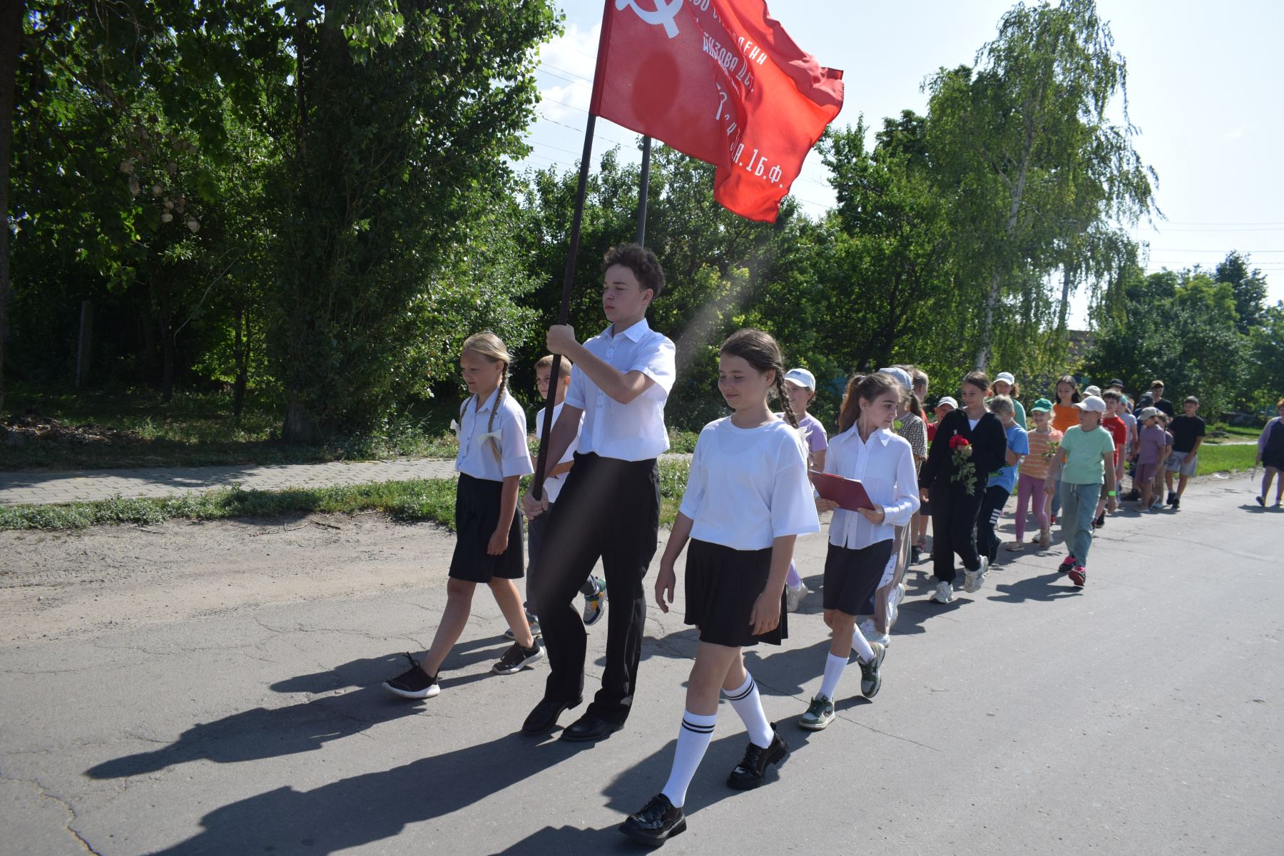 В начале дня, особенностью образовательной программы первой части которого стали мероприятия, посвященные 84-годовщине начала Великой Отечественной войны, ребята провели традиционную зарядку, а после завтрака состоялась ежедневная Линейка, в рамках которой начальником лагеря М.В. Овчаренко все присутствовавшие были ознакомлены с историей возникновения и традициями проведения этой всероссийской памятной даты.