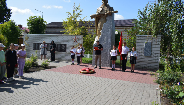 В продолжение активисты приняли участие в "Митинге памяти", проведенном совместно с сотрудниками Подгоренского КДЦ на Мемориальном комплексе "Погибшим односельчанам в годы войны", почетными гостями которого выступили – Глава Подгоренского сельского поселения - С.Д. Ордынская и директор КДО "Вдохновение" Краеведческий музей Л.М. Речинская, и вспомнили о тех трагических событиях, почтили память погибших земляков, возложив цветы к мемориалу, а активистка Анна Бутко исполнила две музыкальные композиции "А закаты алые …" и "Не забывайте".