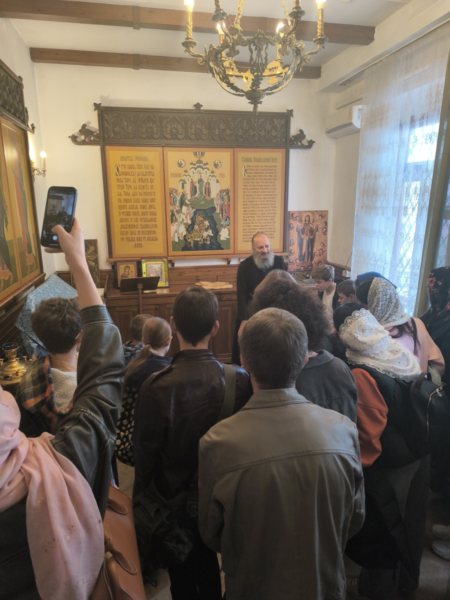 О непреходящей ценности знания истории нашей страны, особенно для подрастающего поколения говорил настоятель храма протоиерей Алексий Касатиков. Отец Алексий не понаслышке знает, насколько важны для человека настоящие, не повреждённые ложными измышлениями знания. В рассказе отца Алексия перед ребятами разворачивались живые картины истории нашего государства. Сам храм, его богатые стенные росписи и иконы водили экскурсантов по векам – от святого равноапостольного князя Владимира и Крещения Руси до святителя Луки (Войно-Ясенецкего), архиепископа Симферопольского и Крымского, доктора медицинских наук, хирурга, учёного.