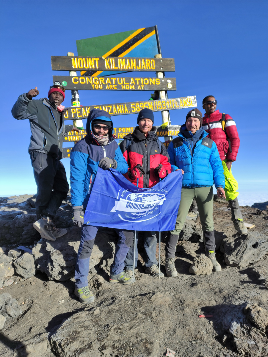 Флаг Молодёжного клуба РГО на вершине Килиманджаро