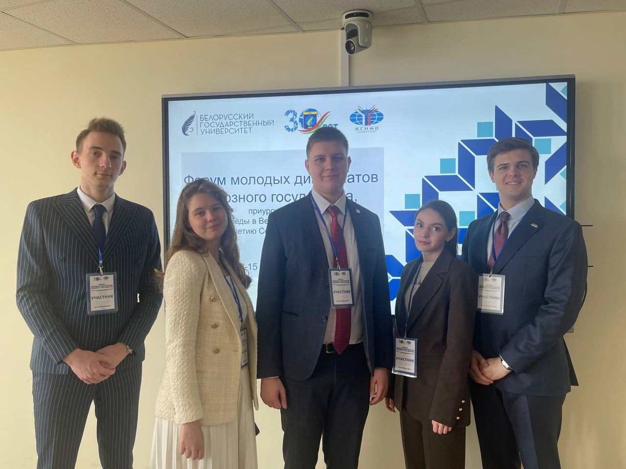 14 и 15 апреля активисты МК РГО Terra Politica НСО МГИМО в составе делегации МГИМО приняли участие в Форуме молодых дипломатов Союзного Государства, который состоялся на площадке Белорусского государственного университета и был приурочен к 80-летию Победы в Великой Отечественной войне и 25-летию создания Союзного Государства России и Беларуси. В мероприятии приняли участие студенты из МГИМО и Белорусского государственного университета, эксперты, дипломаты и представители органов власти двух стран.