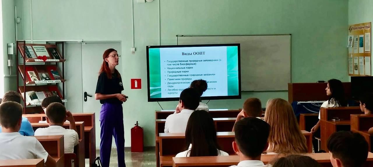 На комплексном мероприятии "Особо охраняемые территории Краснодарского края" школьникам проведен показ фильма на тему "ООПТ на территории Краснодарского края" с обсуждением проблем сохранения природы края. Ольга Лихоиваненко рассказала о проектах Русского географического общества, направленных на популяризацию среди молодёжи сохранения окружающей среды, о Кавказском биосферном природном заповеднике как о самой масштабной особо охраняемой территории Краснодарского края.