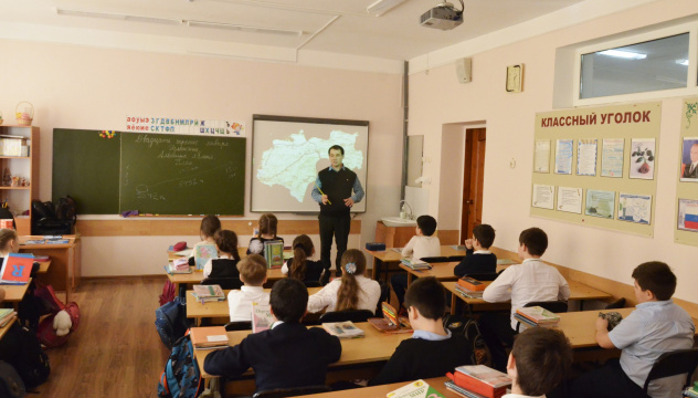 В Нальчике для учеников 3 класса СОШ № 32 руководитель местного Молодежного клуба Русского географического общества (МК РГО) Тенгиз Мокаев провел интерактивный урок «Путешествие по карте Кабардино-Балкарии», а также презентацию работы МК РГО.