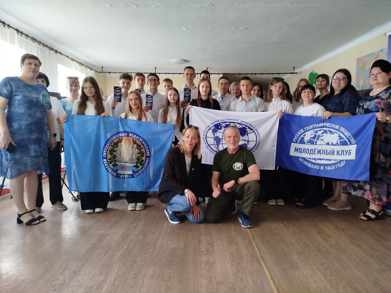 Представители Регионального отделения РГО в ЛНР и Молодёжного центра РГО ЛНР, а также преподаватели кафедры географии Института естественных наук Луганского государственного педагогического университета Надежда Краснокутская и Юлия Заруцкая рассказали ученикам школ о значении географических знаний, деятельности РГО и возможностях участия в мероприятиях и проектах, реализуемых Молодёжным центром РГО. Также были проведены выставки-викторины РГО «30 вопросов по географии России».