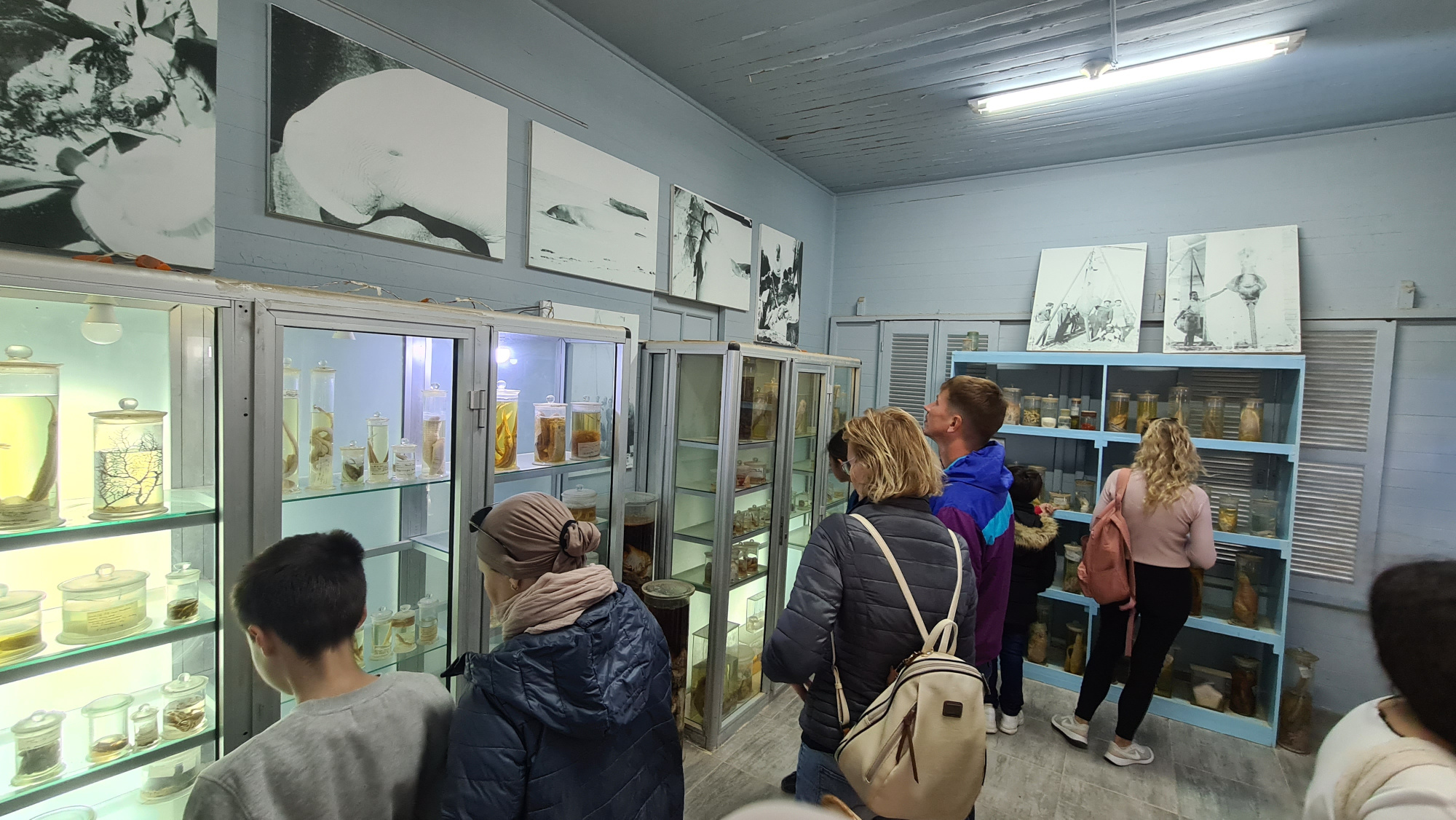 Экскурсию по аквариуму и музею провел доктор Мохсен Якут, сотрудник Национального института океанологии. В экспозиции музея представлены образцы фауны Красного моря, многие из которых уже совсем не встречаются или мало встречаются, включая ламантинов, гигантскую манту, гигантских морских черепах.