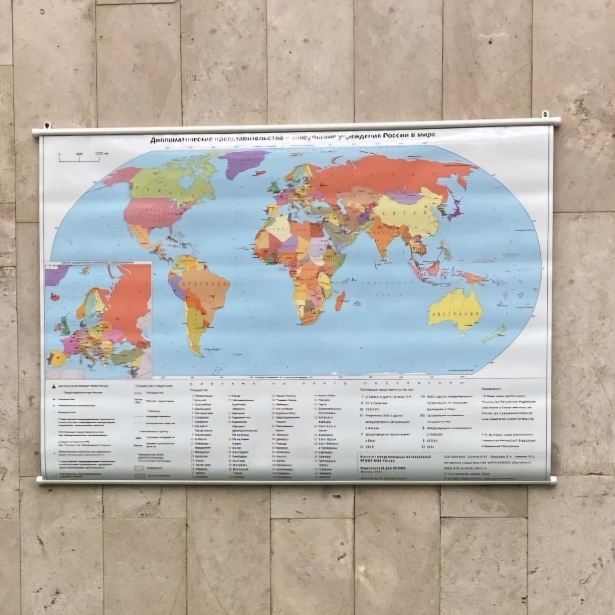 Новая карта станет отличным подспорьем для изучающих международные отношения и внешнюю политику России. Также она будет интересна тем, кто увлекается дипломатией и мировой политикой.