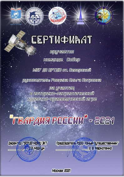 Команда "Собер", в состав которой вошли активисты северского Молодежного клуба РГО, на протяжении двух месяцев играли в историко-патриотической туристско-краеведческой игре "Гвардия России".