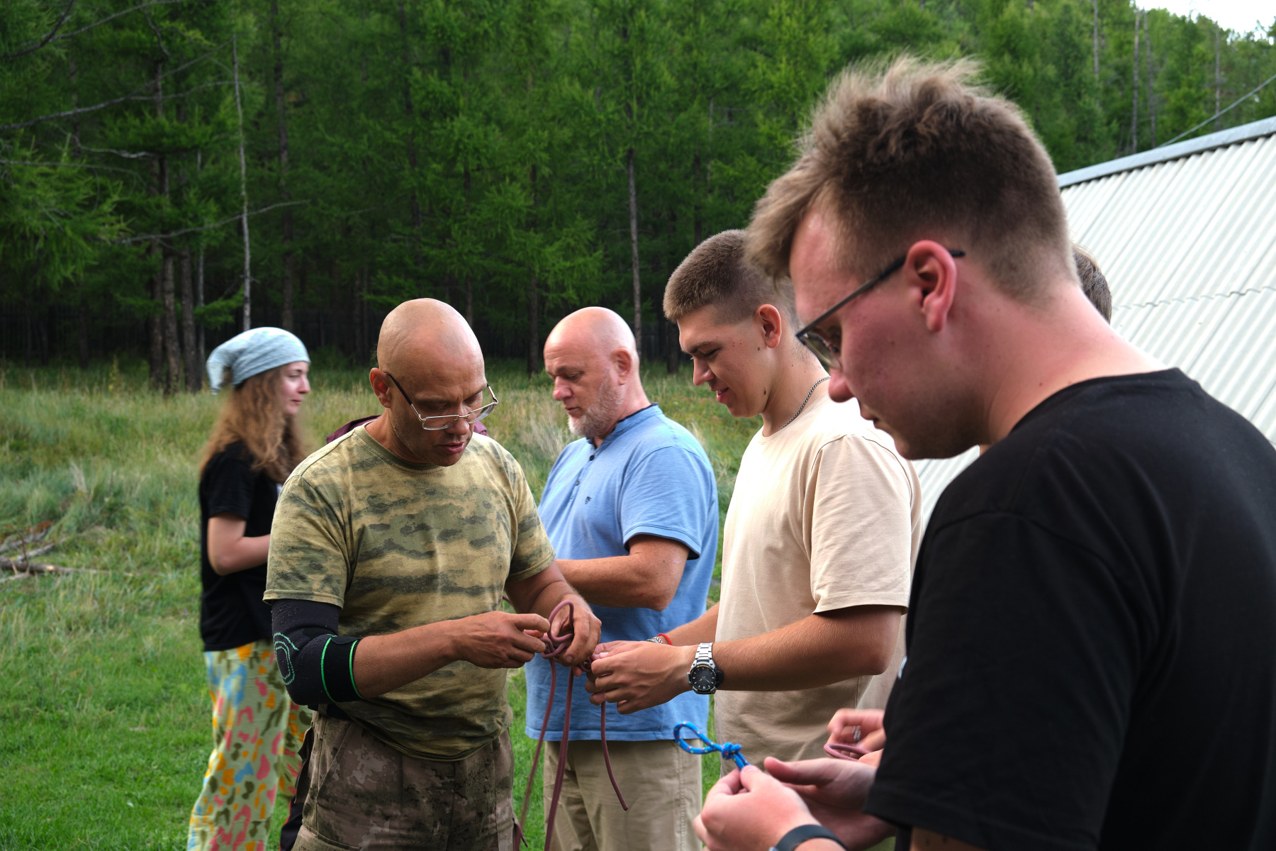 О правилах безопасного пребывания в лесу и организации туристских маршрутов рассказал начальник Центра подготовки спасателей им. А.И. Степанова Байкальского поисково-спасательного отряда МЧС России Юрий Токарев. Вводная лекция была посвящена технике пешеходного туризма, организации спасательных операций и правилам поведения при встрече с дикими животными, укусах змей и клещей. После занятия ребята отработали навыки на практике: организовали переправу через условную реку с помощью «параллельных перил», тренировались в транспортировке пострадавших, обустраивали бивуак и осваивали туристское снаряжение.