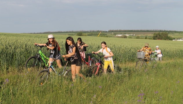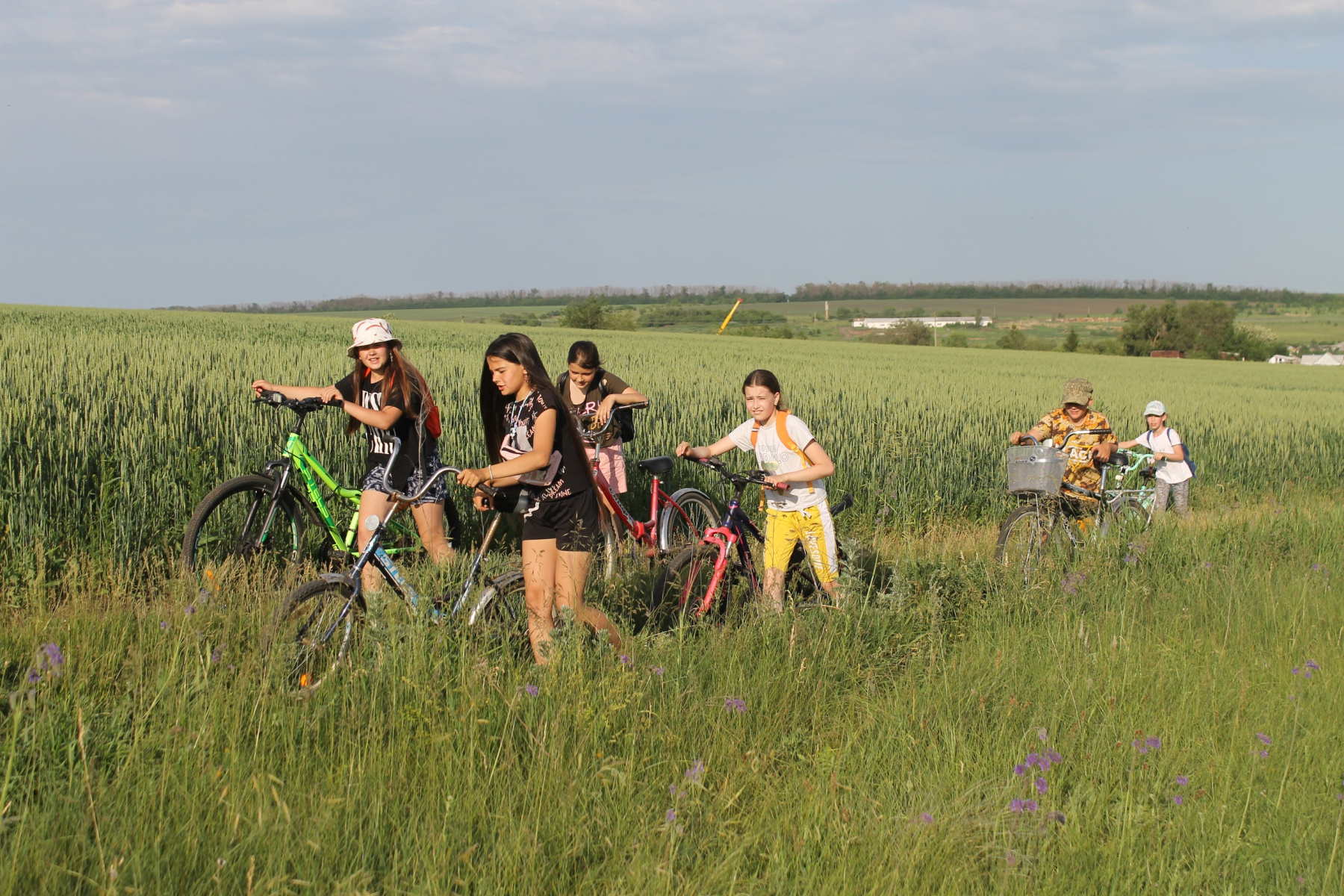 Протяженность маршрута около 10 км. Конечная точка маршрута Грачёвский пруд. В планах объехать все водоёмы нашего села. Думаем, что за лето справимся!