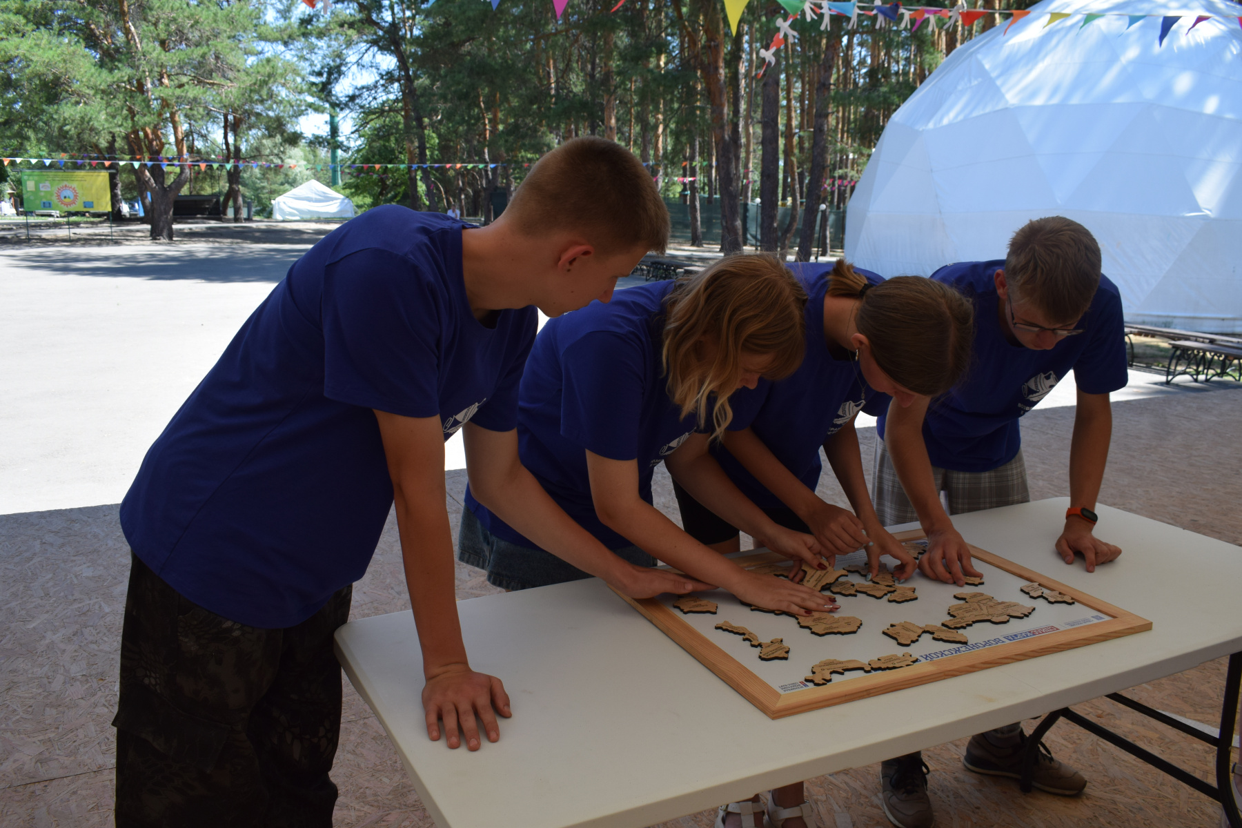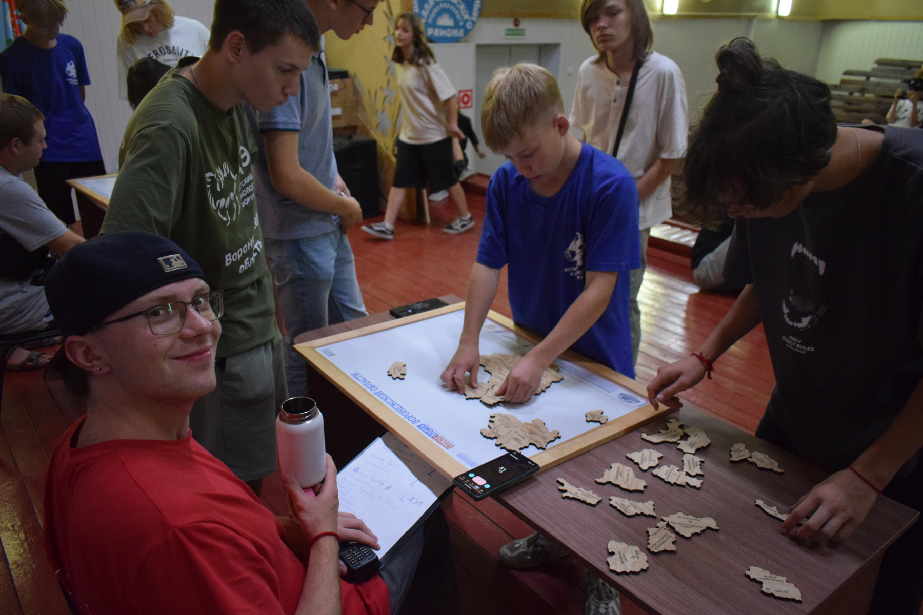 С 4 по 16 июля на базе ДОЛ "Солнышко" Калачеевского района Молодежным клубом РГО "Россошь" были проведены серия мастер-классов и соревнования "Люби и знай, родной край", в ходе которых 50 участников областного историко-краеведческого лагеря "Возвращение к истокам" смогли проверить свои знания об административно-политическом устройстве родного региона, поучаствовав в соревнованиях по скоростному сбору спилс-карты Воронежской области.