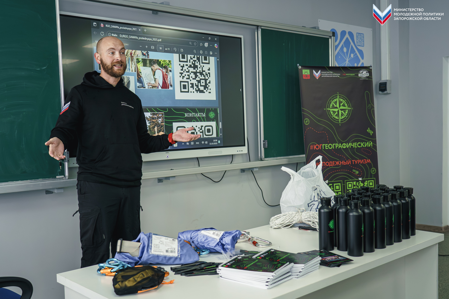 "Юг географический" - это образовательная программа направленная на создание условий для приобретения и совершенствования туристских навыков, исследовательского мастерства, возможности развивать и укреплять свое физическое и психологическое здоровье для молодежи, проживающей на территории Запорожской области. Учащиеся прошли лекции по 7 трекам: "Молодой наставник", "Краеведение", "Наука для всех", "Путешествия со смыслом", "Новые Медиа", "Экология – дело каждого", "Спилс-карты". Проект стартовал в 2024 году.