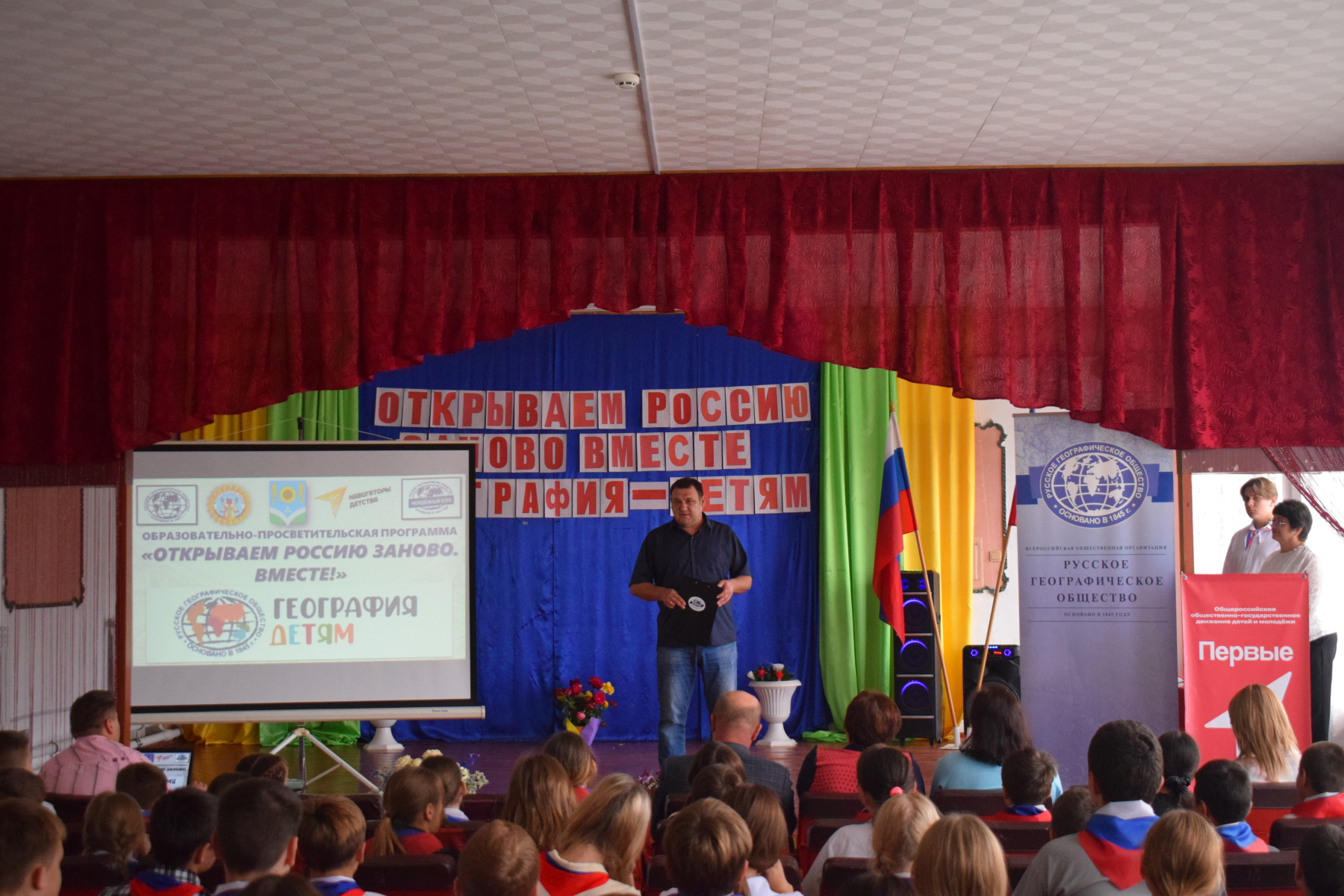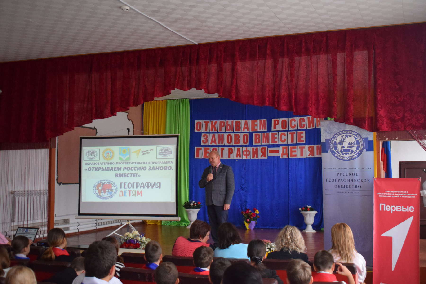 26 сентября на базе ГБОУ "Новопсковская газопроводская СШ" Луганской народной республики в рамках социальной акции "География - детям" и межрегионального проекта "Содружество Донбасс" прошла образовательно-просветительская программа "Открываем Россию заново, вместе!", в которой приняли участие более 80 человек – учащиеся и сотрудники школы, а также волонтеры и эксперты Молодежного клуба "Россошь".