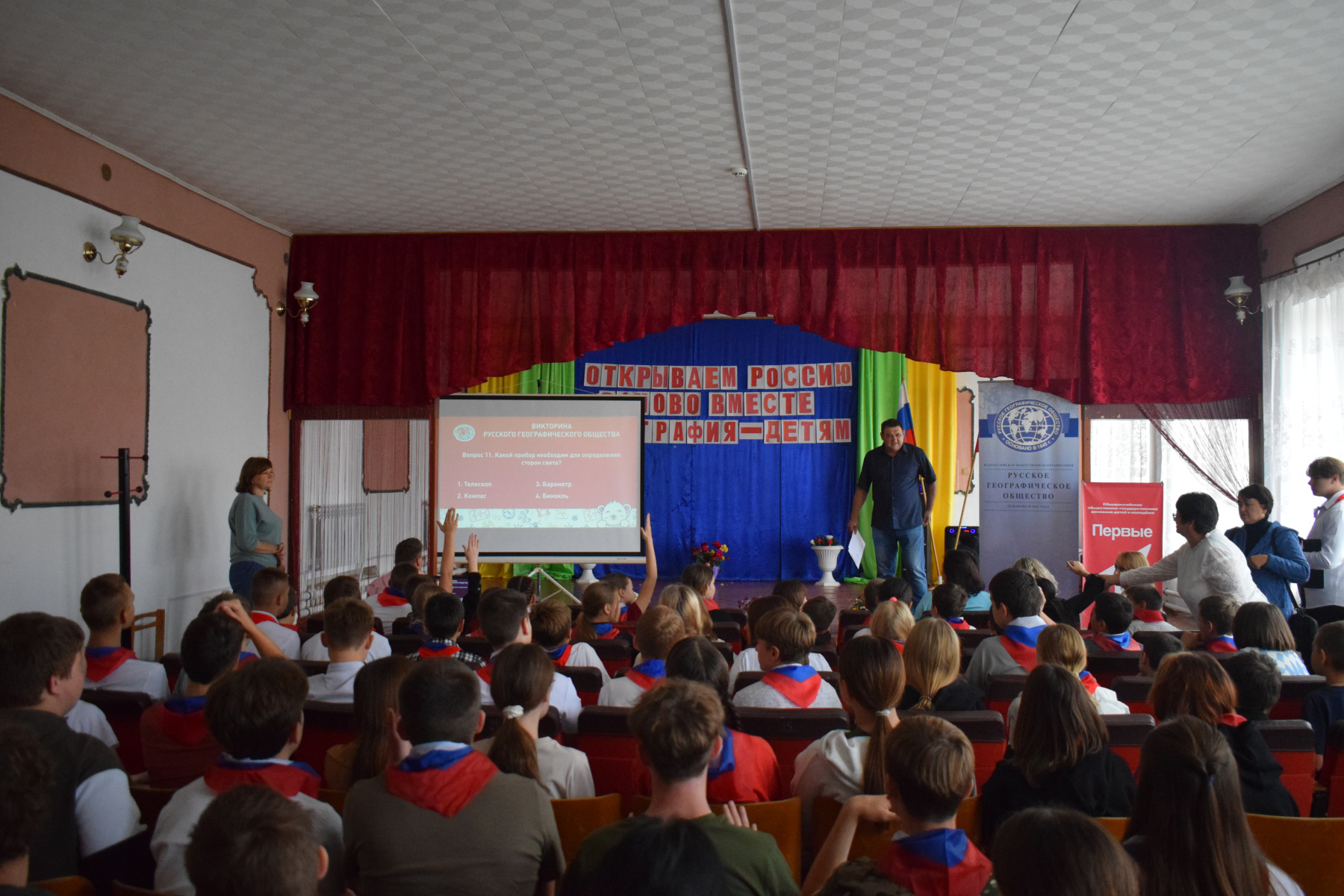 В первой части программы состоялся просветительский кинолекторий "Русское географическое общество: колыбель науки и великих открытий", в рамках которого участники узнали о истории и современной деятельности этой старейшей общественной организации нашей страны, после чего для активистов была проведена интеллектуальная викторина РГО "Что ты знаешь о России?", в ходе которой они и не только показали свою эрудированность, ответив на 14 вопросов из области географии и истории нашего государства, но и за правильные ответы были отмечены памятными сувенирами.