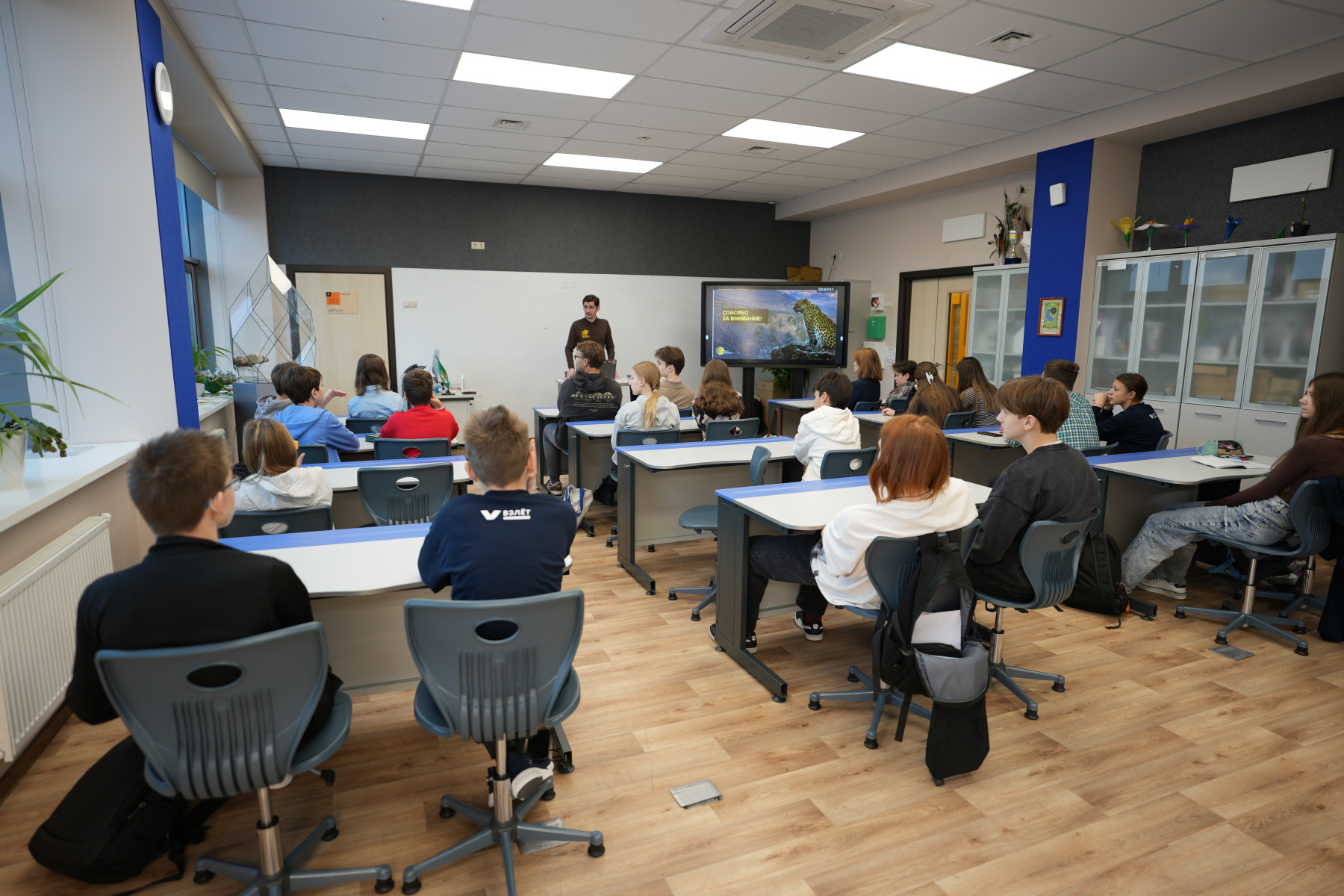 Активисты Молодёжного центра РГО Московской области посетили Гимназию им. Е.М. Примакова, где провели две лекции, на которых поговорили о самой «кошачьей» особо охраняемой природной территории России – национальном парке «Земля леопарда» и о Красной книге Московской области. Мероприятие провели совместно с Молодёжным клубом РГО «Примаковская гимназия» и Даниилом Гончаровым, ведущим специалистом по связям с общественностью ФГБУ «Земля леопарда».