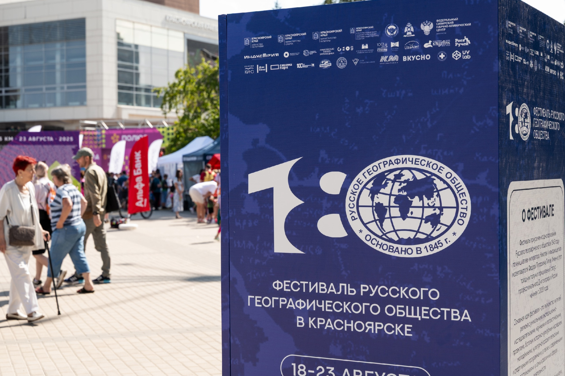 Молодёжный клуб РГО «СФУ» присоединился к организации интерактивной площадки «Территория открытий», которая работала на Фестивале. Совместно с преподавателями кафедры географии и студентами Сибирского федерального университета ребята подготовили станции, где участники Фестиваля могли проверить свои знания, эрудицию и смекалку.