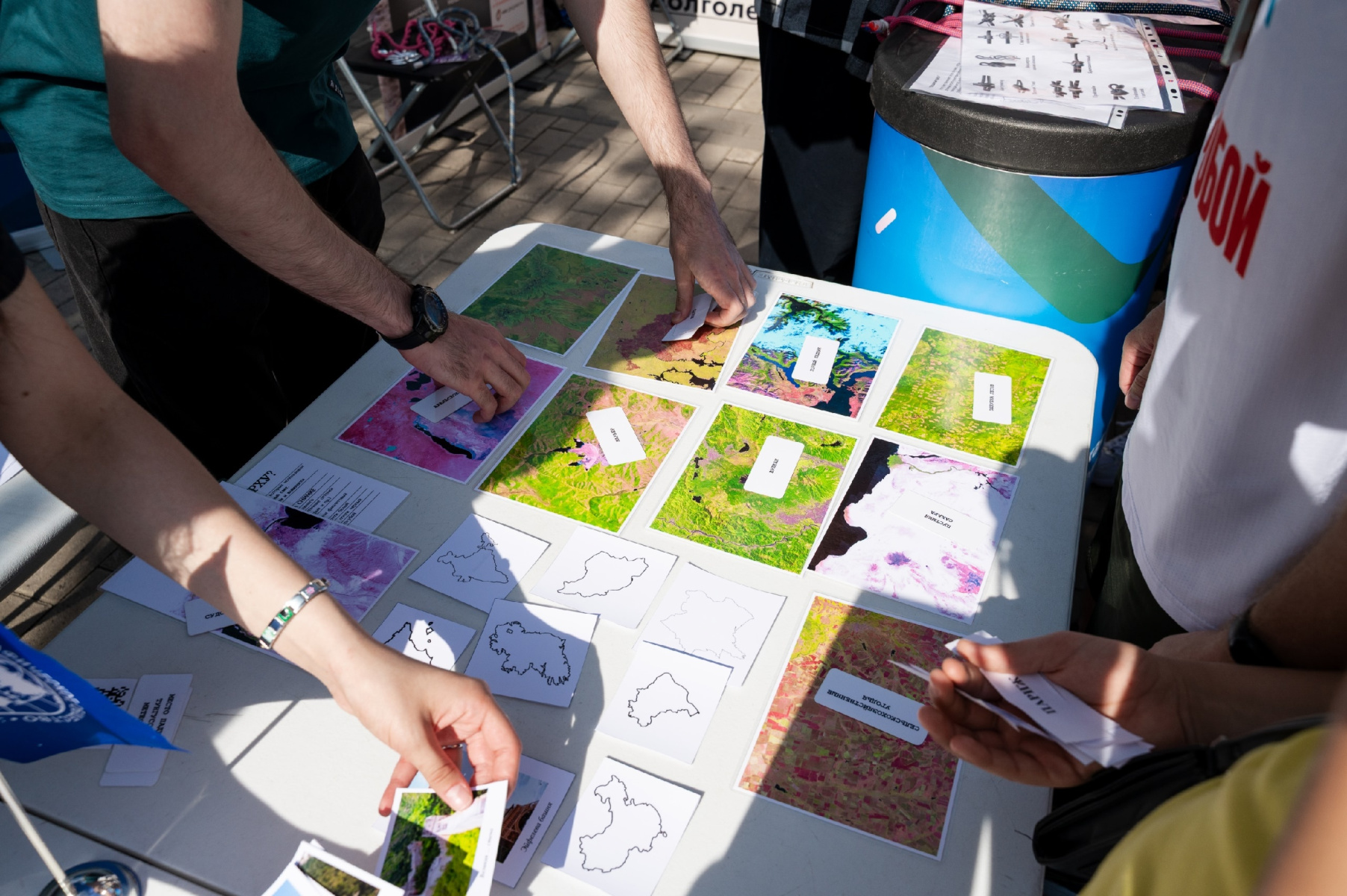 В рамках станции «Мир географии» участники сопоставляли карточки с названиями стран и их столиц, изображениями контуров государств и известных достопримечательностей. И взрослые, и самые маленькие участники продемонстрировали хорошие знания и визуальную память.
