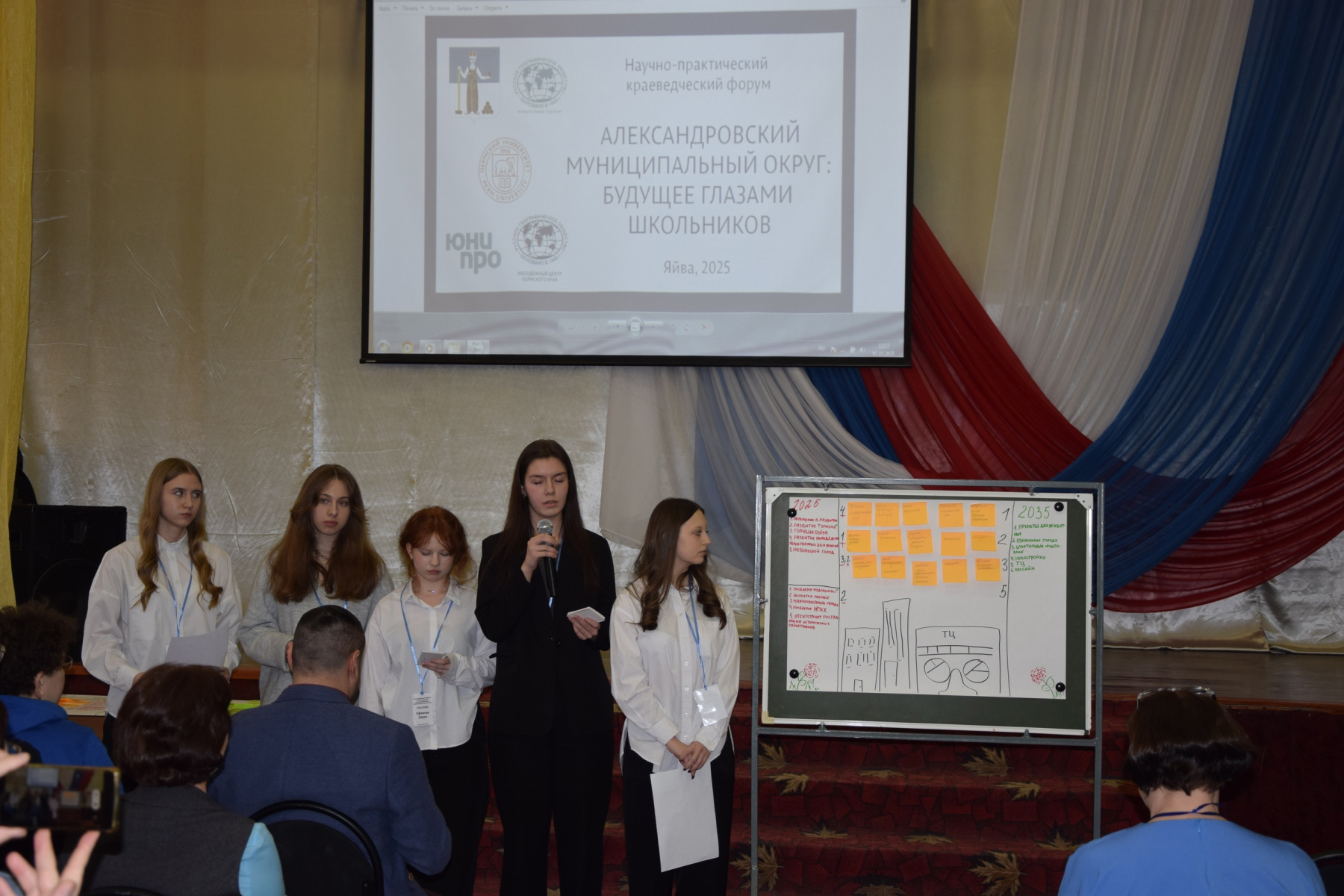 В рамках форсайт-сессии перед командами стояла задача проанализировать сильные и слабые стороны округа на 2025 год, а затем предложить новые идеи для развития в 2035 году.