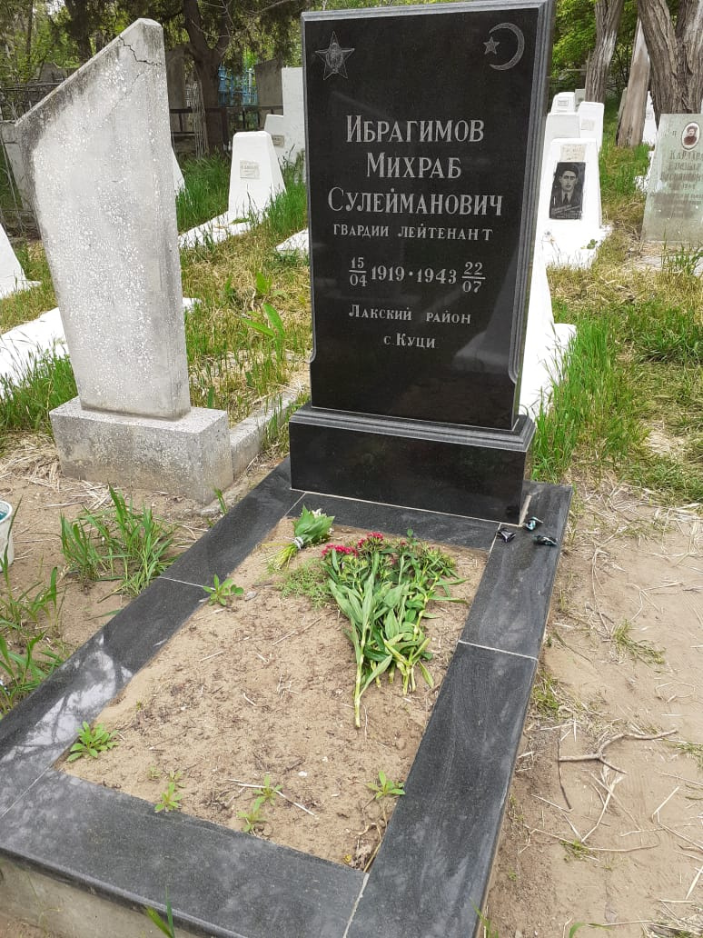 Ибрагимов Михраб Сулейманович, 15.04.1919 года рождения, уроженец с. Куци Лакского района. Он воевал на Ленинградском фронте и 22 июля 1943 года во время ожесточенных боев за Синявские высоты взрывом снаряда был убит, состоял в списках без вести пропавших.
