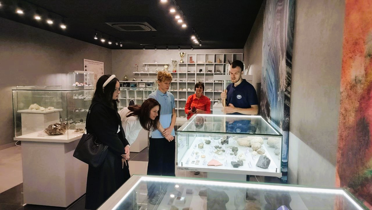 В экспозиции «Систематика минералов» ребята познакомились с их химическим многообразием, посмотрели преломление исландского шпата, попробовали на вкус галит, пощупали мыльный камень — тальк. «Руды» и «Ювелирно-поделочные камни» показали значимость недр Земли в экономике. Завершилась экскурсия погружением в историю и эволюцию жизни на Земле на экспозиции «Палеонтология».