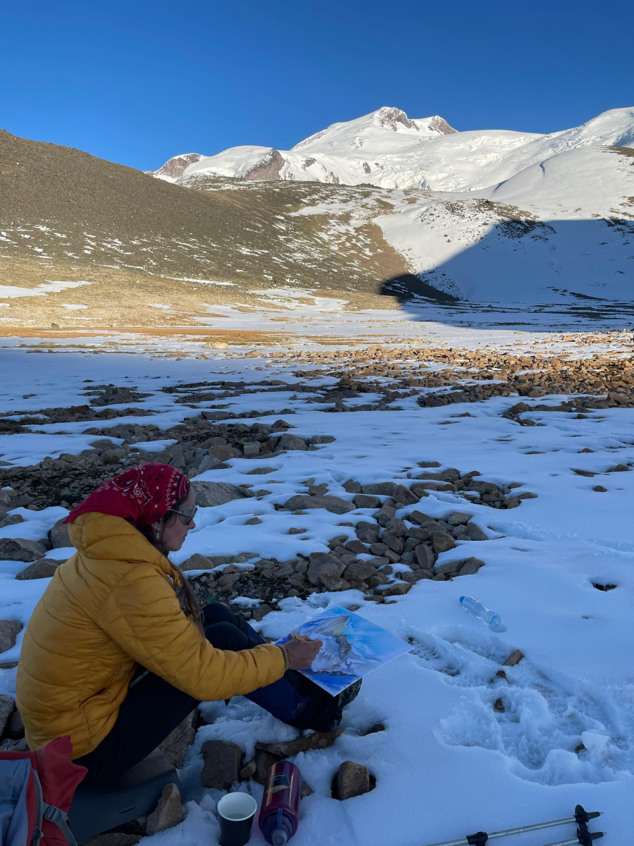 На самом озере в рамках проекта клуба "Экстремальный пленэр" Чотчаева Елена, руководитель МК РГО "Белалакая" провела мастер-класс по живописи и написала картину на высоте