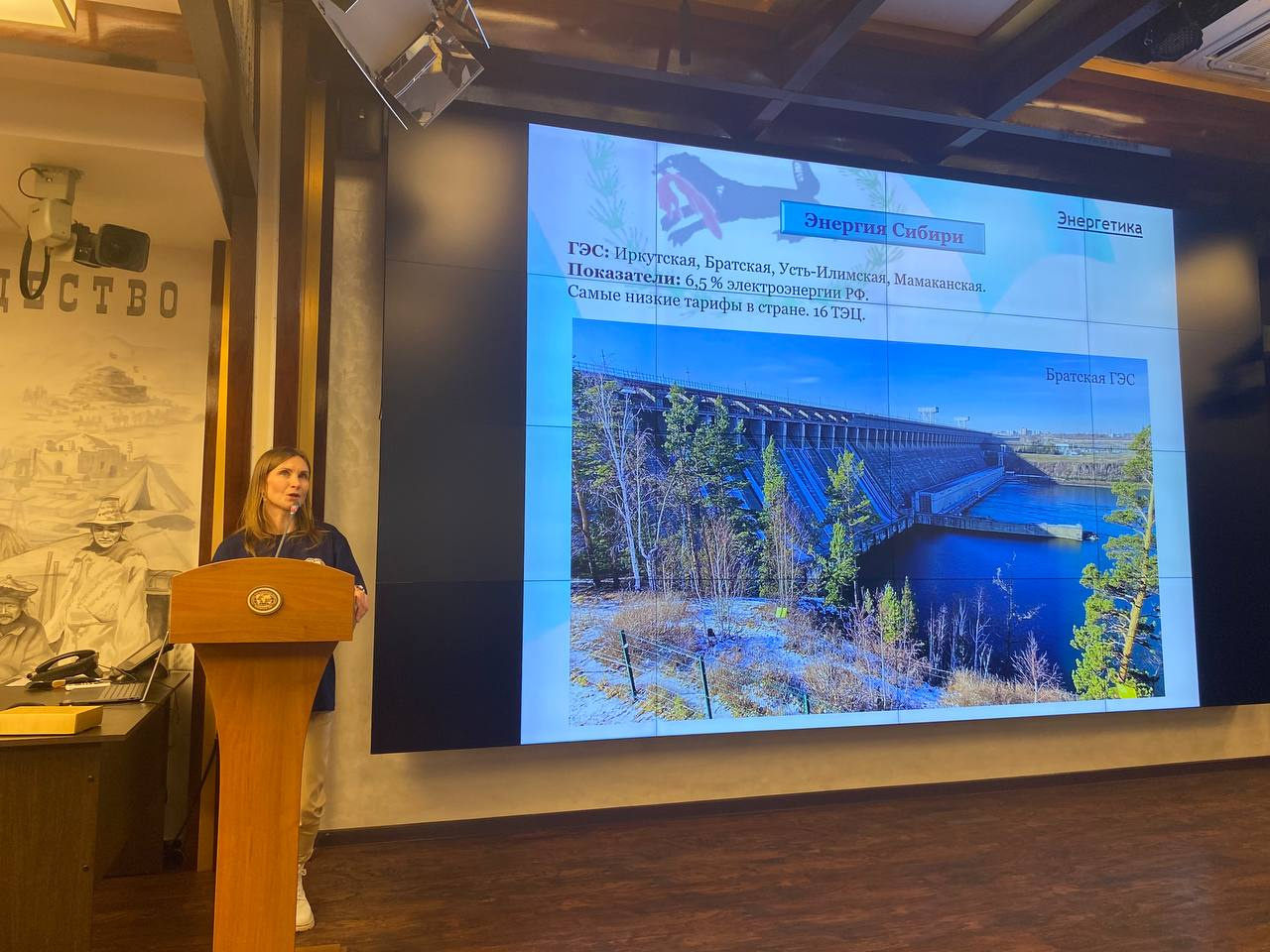 Значительное место в лекции заняла тема природных богатств. Слушатели познакомились с разнообразием ландшафтов Иркутской области — от горных хребтов до рек и таёжных массивов. Особый акцент был сделан на озере Байкал, объекте Всемирного наследия ЮНЕСКО и символе региона. При этом лектор подчеркнула, что Иркутская область — это не только Байкал. Среди других природных жемчужин были названы Ботовская пещера — самая длинная в России, труднодоступные и почти нетронутые территории Тофаларии, а также хребты Кодара и Восточных Саян.