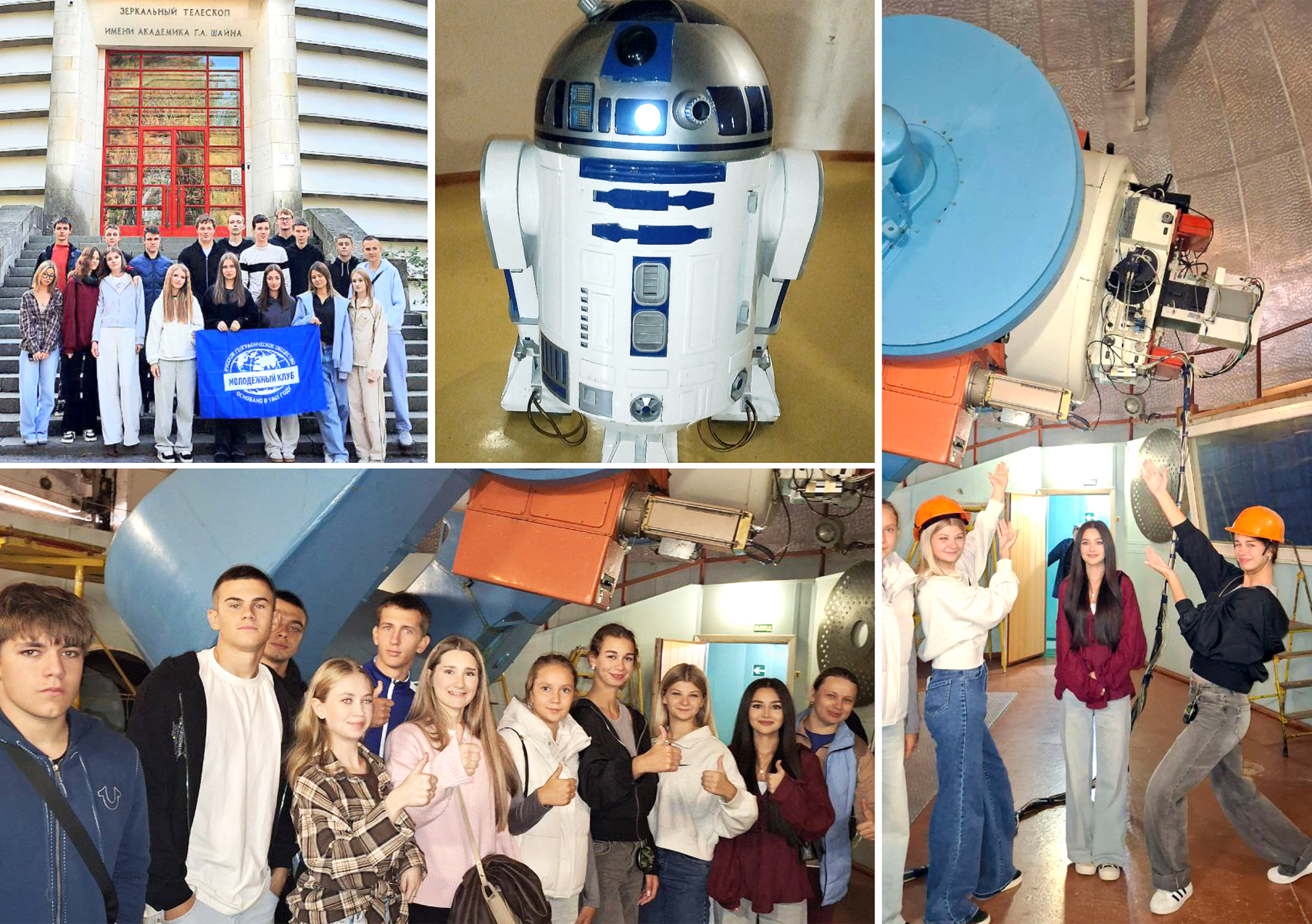 Специалисты обсерватории провели увлекательную экскурсию. Участники узнали о галактических кометах, вулканах на Луне, чёрных дырах, метеорах, пульсирующих звёздах, температуре звёзд разного спектра и многом другом. Они посмотрели в демонстрационный телескоп и даже увидели копию робота из «Звёздных войн».