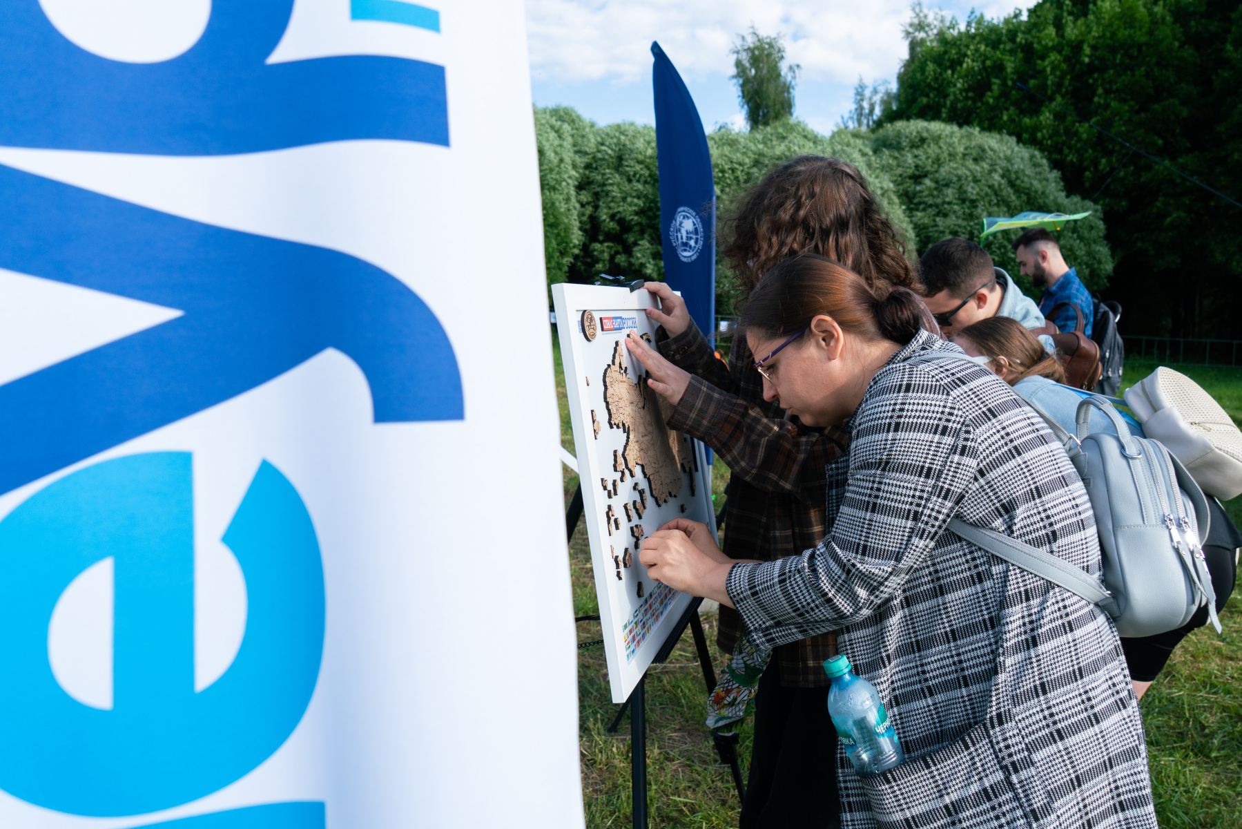 На протяжении всего дня на площадке работали тематические зоны. Участники собирали спилс-карту России, играли в настольные игры о народах страны и животных, осваивали навыки правильной сортировки мусора. Вместе с руководителем Артёмом Рябухиным и активистами Молодёжного клуба РГО «Дикие тропы» гости устанавливали палатки, учились вязать узлы и оказывать первую помощь. На космическом мастер-классе "Как поймать спутник" с инженерной компанией Лоретт ребята собирали антенны для приёма спутниковых данных, получали снимки Земли с орбиты и самостоятельно предсказывали погоду. Также работала «Полоса препятствий», организованная активом Молодёжного центра РГО Московской области, и зона мастер-классов по экологии, народным орнаментам и даже созданию воздушных змеев от активистов Молодёжного центра РГО города Москвы.