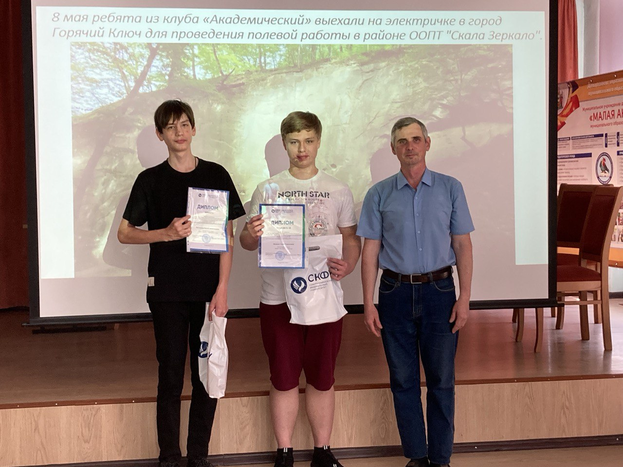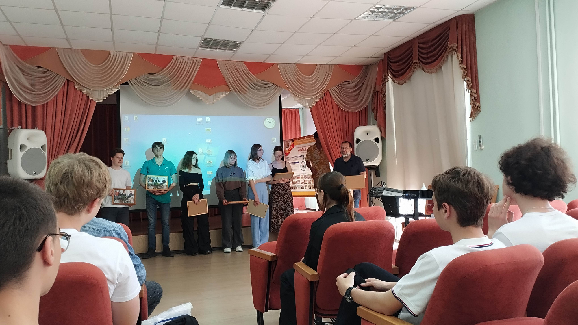 После этого в честь ребят, которые в этом году заканчивают школу, было проведено мероприятие подготовленное учащимися 8-10 классов. Ребята спели песни, показали сценку, провели несколько викторин, показали интересные химические опыты. В завершении мероприятия выпускникам этого года были вручены коллажи. А эксперт Молодёжного клуба «Академический» Алексей Александрович Оробец напутствовал ребят и вручил от РГО каждому выпускнику книгу А.В. Твёрдого «Кавказ в именах».