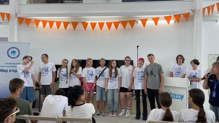 Проект профильных смен «Мир открытий» реализуется Русским географическим обществом вместе с Министерством просвещения Российской Федерации с 2015 года. Организацией и проведением смен занимается Краснодарское региональное отделение РГО. Первая международная смена в ВДЦ «Океан» проходит при поддержке Федерального агентства по делам Содружества Независимых Государств, соотечественников, проживающих за рубежом, и по международному гуманитарному сотрудничеству. Главная цель масштабного образовательного проекта — сохранение и приумножение интеллектуального потенциала России. Участниками проекта стали уже более 7,5 тыс. ребят из всех регионов РФ.