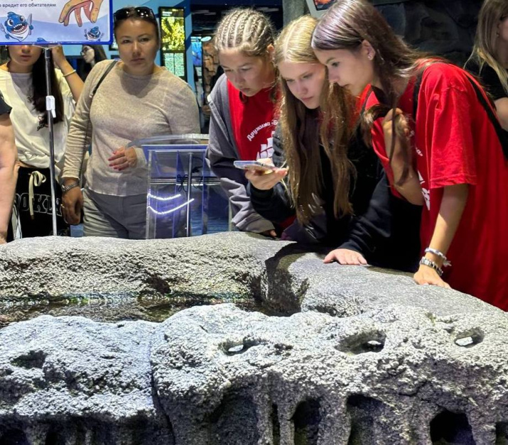 Заключительным событием дня стало посещение Приморского океанариума — одного из крупнейших в Евразии. Более 15 000 морских и пресноводных обитателей, интерактивные зоны, экспозиции всех климатических зон — это не просто экскурсия, это погружение в настоящий подводный мир. Ребята были в восторге: фотозоны, медузы, акулы, подводные туннели… Этот визит вдохновил их на новые исследования.