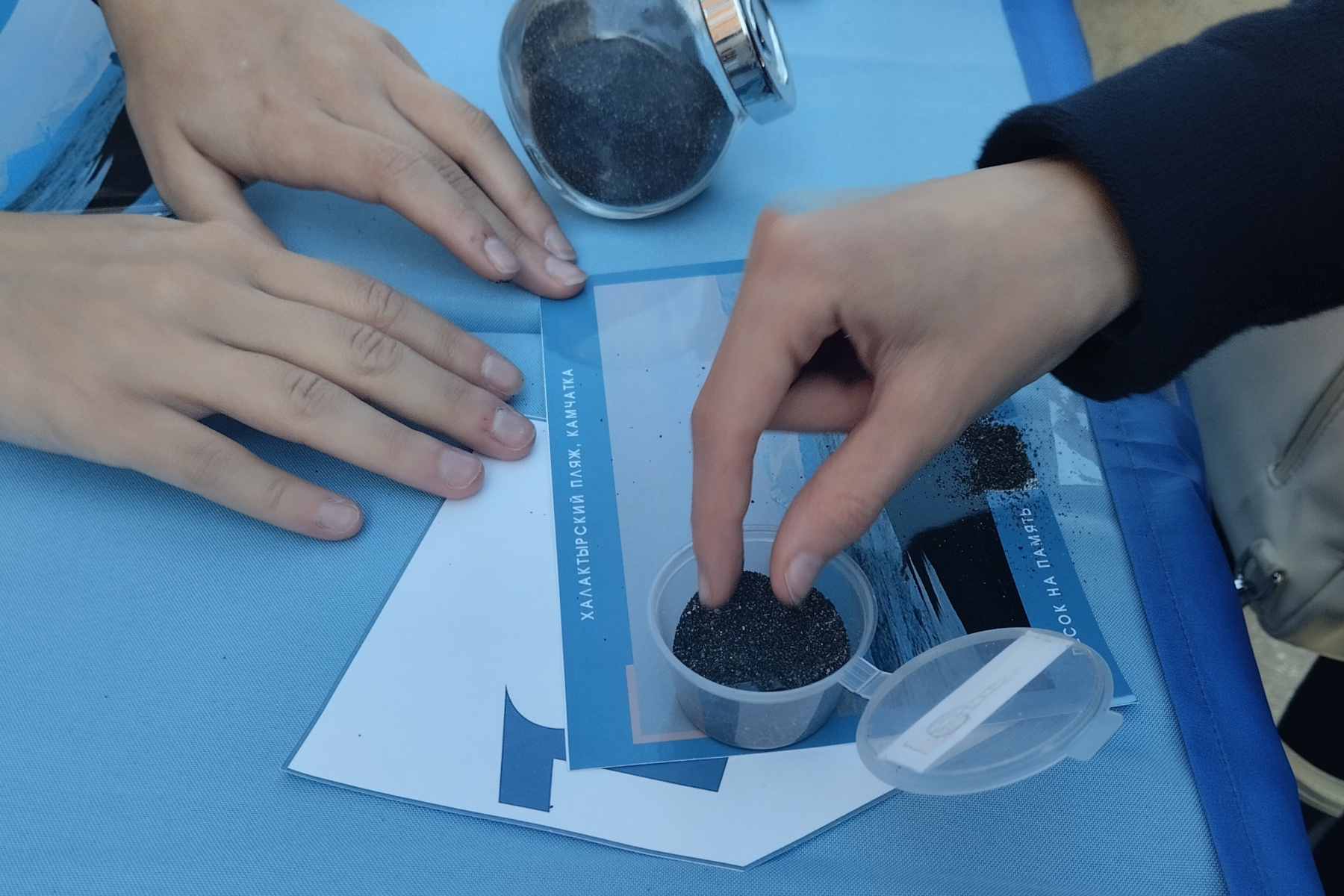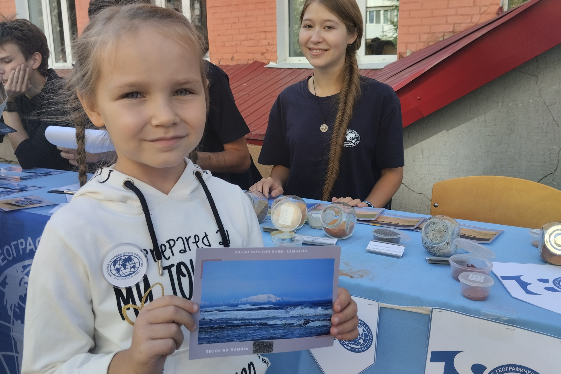 Дети и взрослые с азартом собирали спилс-карту России: одни проверяли свои знания о регионах, другие открывали для себя их точное расположение. Географическая викторина собирала целые компании участников и превращалась в дружеское соревнование. Уникальная коллекция песка из разных уголков мира произвела настоящий фурор: ребята рассматривали яркие образцы и делали из них открытки на мастер-классе в виде памятных сувениров фестиваля.