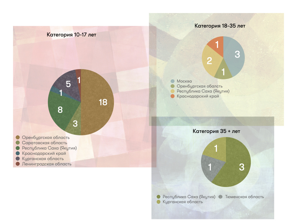 Участниками викторины стали 58 человек представители 8 субъектов РФ в следующих возрастных категориях:
